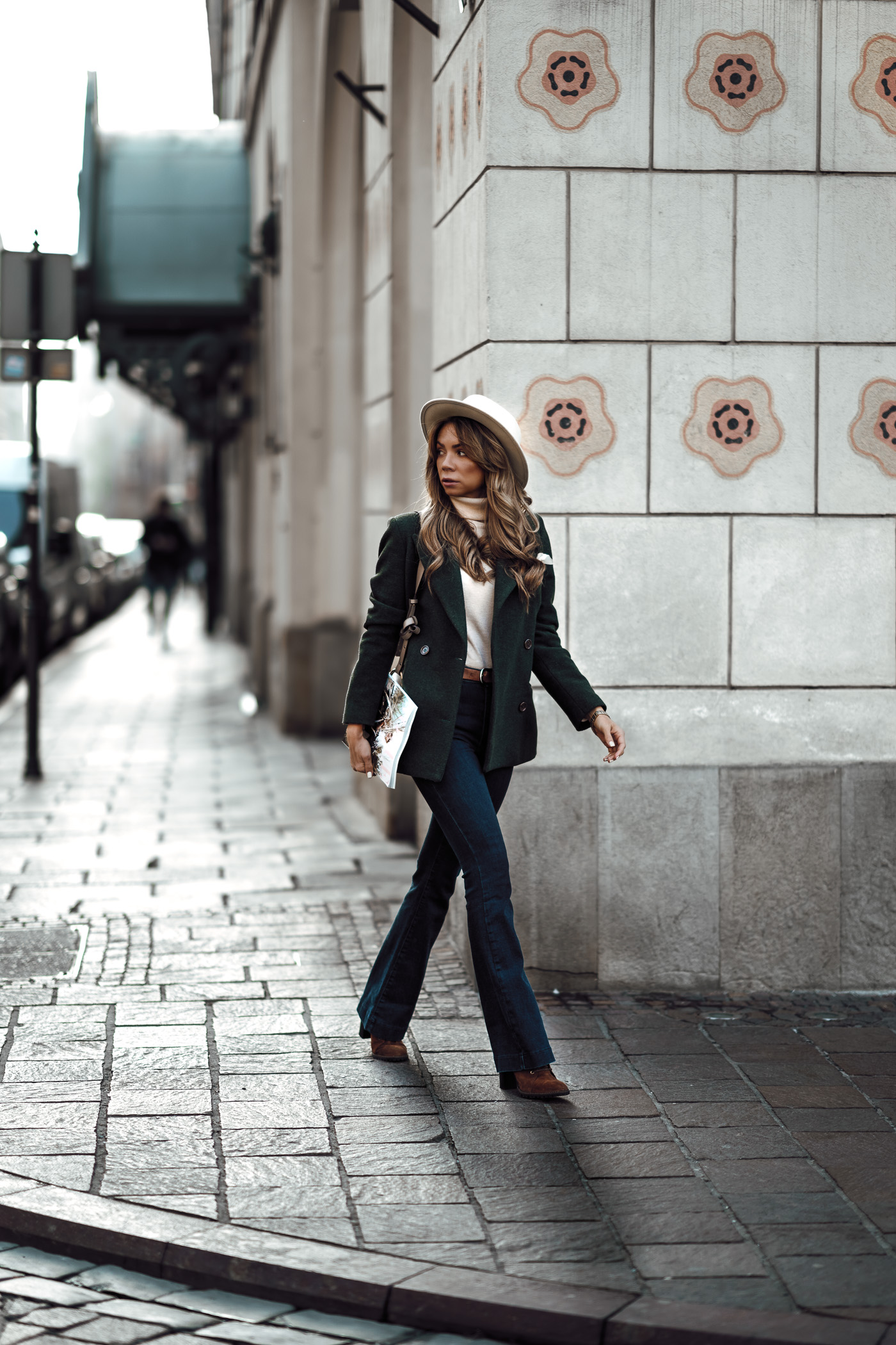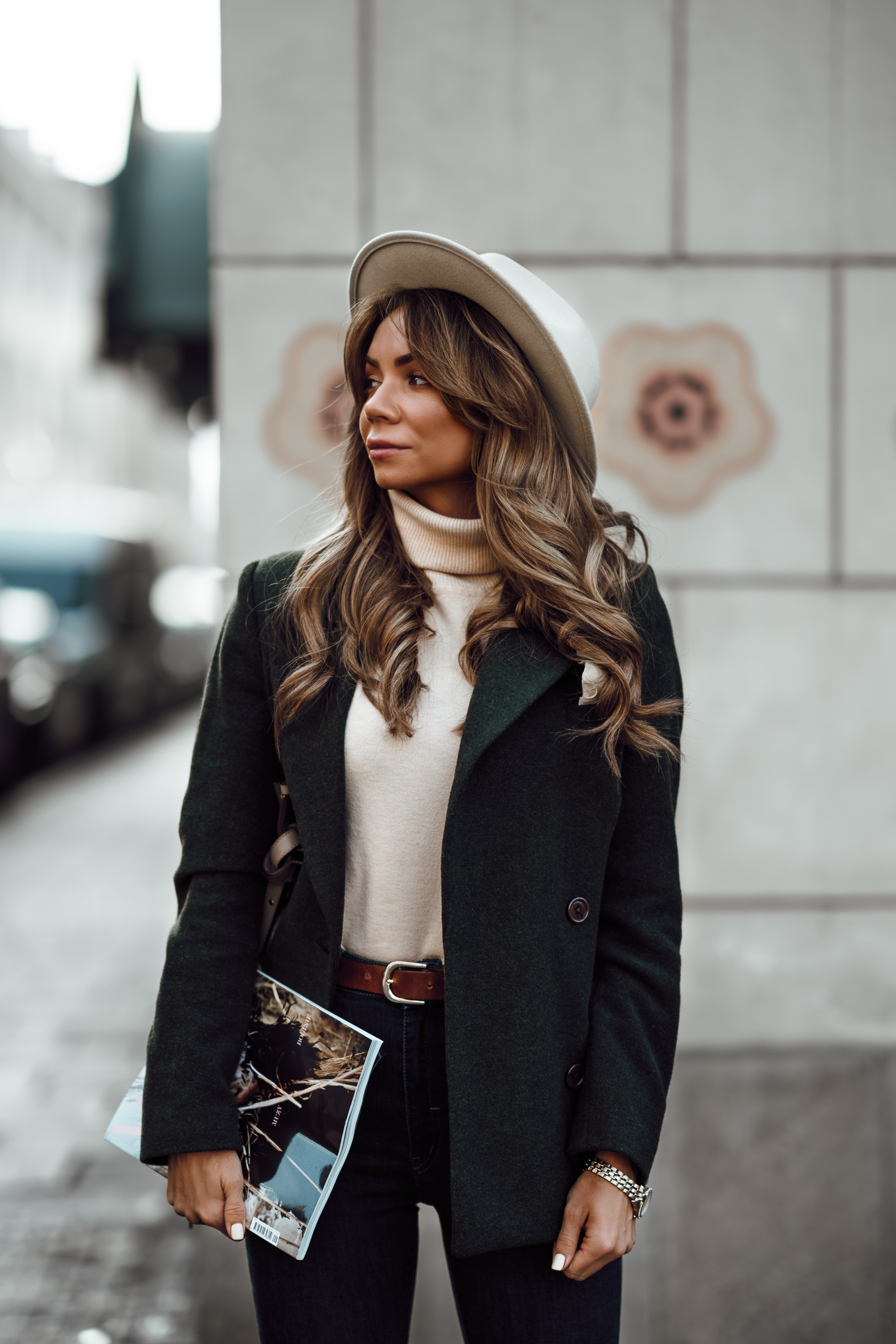 Tym razem jest inaczej, trafiłam na takie, które leżą dosłownie perfekcyjnie, a przy okazji mają świetny materiał. Jak widzicie zestawiłam je bardzo klasycznie z kremowym golfem i wełnianą marynarką. Całość jest bardzo klasyczna, prosta, ale z drugiej strony taka zapadająca w pamięć. Bardzo mi się podoba i mam nadzieję, że Wam również!