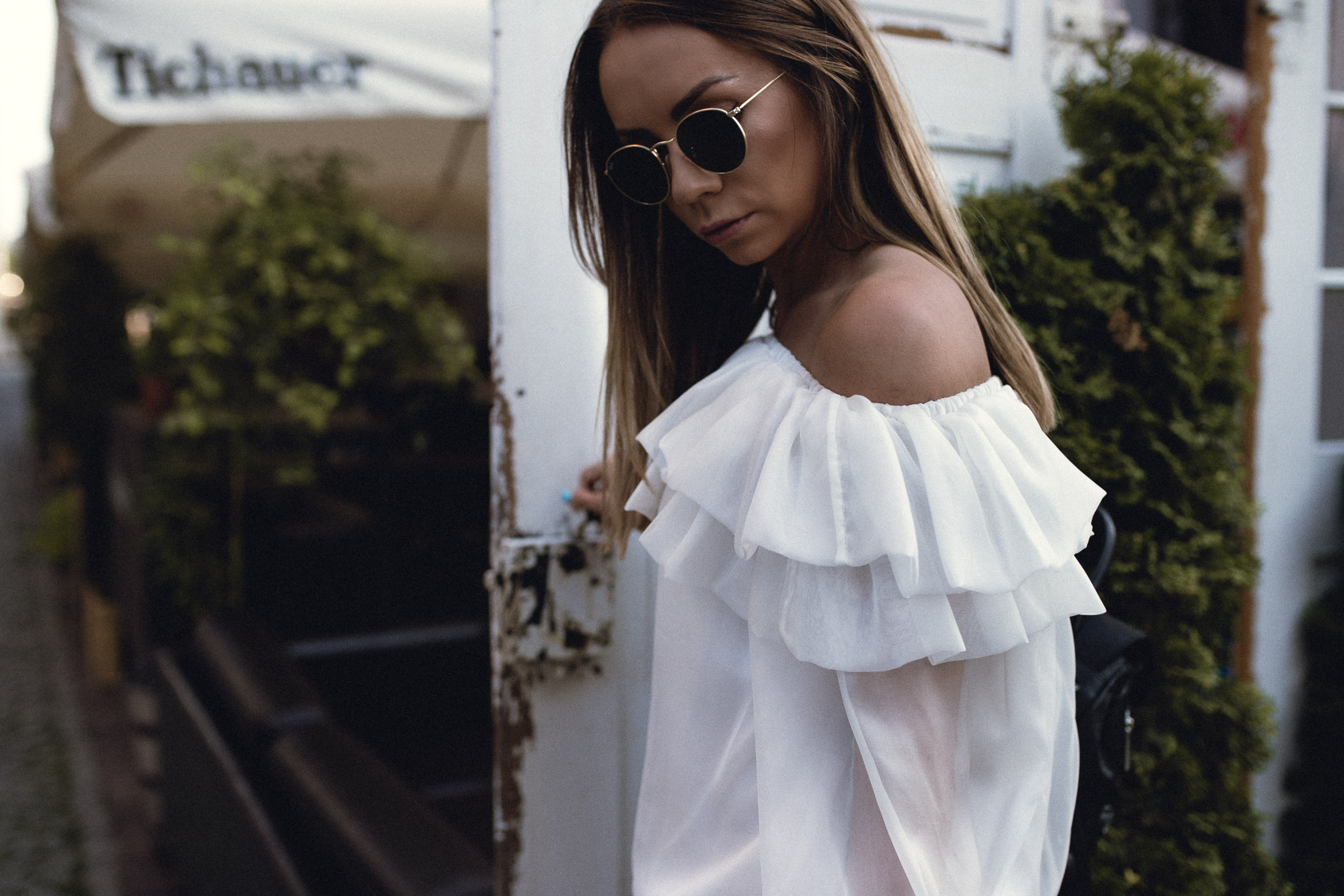 Ja postawiła właśnie na biel i jedwabną sukienkę. Piękna, delikatna świetnie skomponowała się z takimi butami. Dobrałam do całości jeden, bardzo klasyczny dodatek w postaci skórzanego plecaka, który może posłużyć również jako torebka.