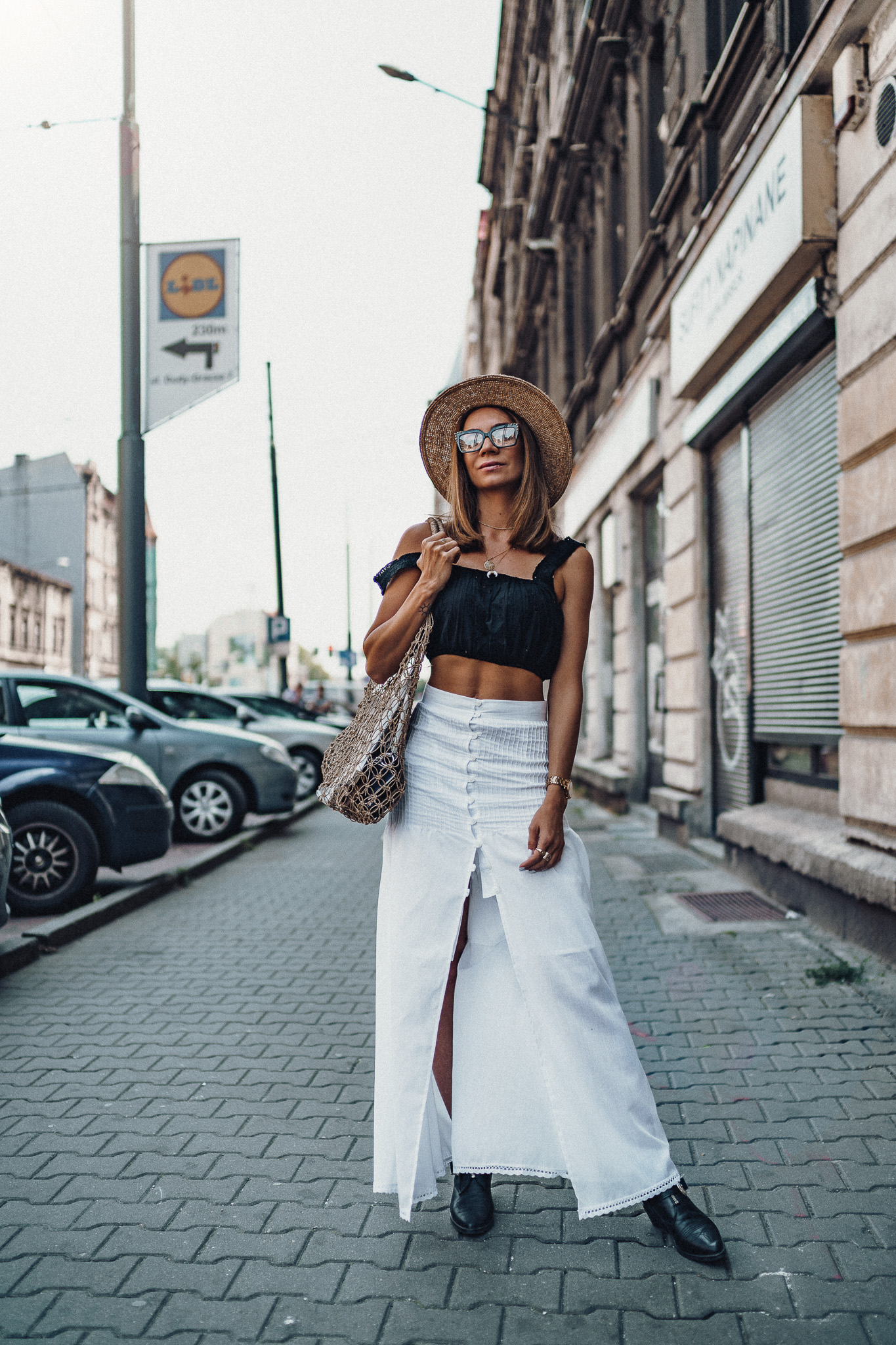 Ta stylizacja bardzo spodobała się Wam na Instagramie, bardzo mnie to cieszy, ponieważ sama ją uwielbiam. Spódnica jest za razem elegancka, idealna na spacery po plaży, ale również ma kobiecy pazur i pięknie podkreśla nogi.