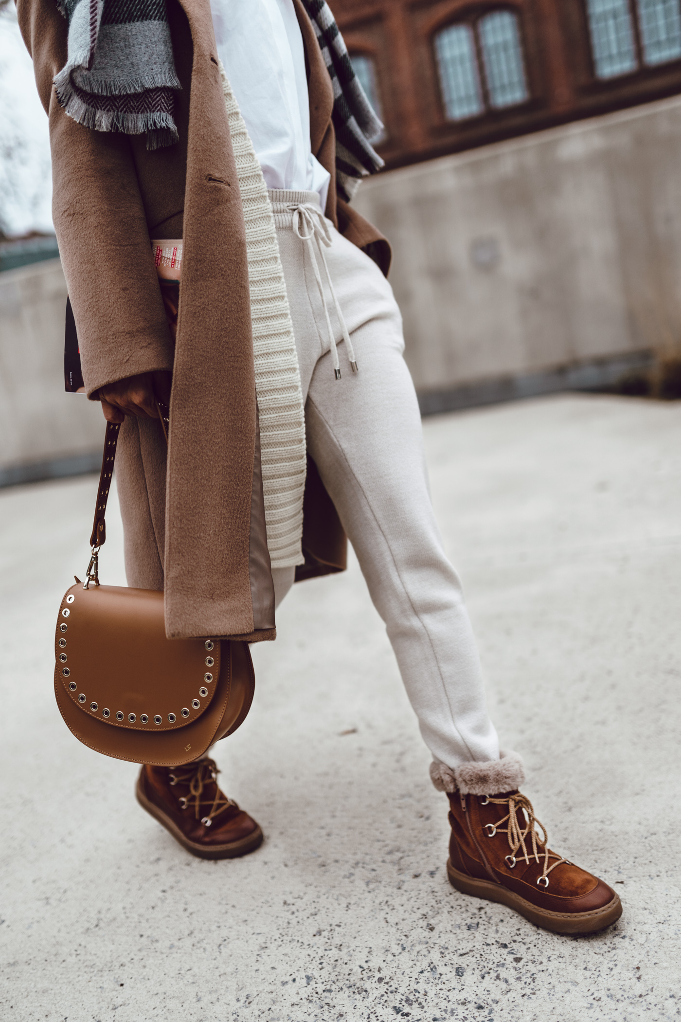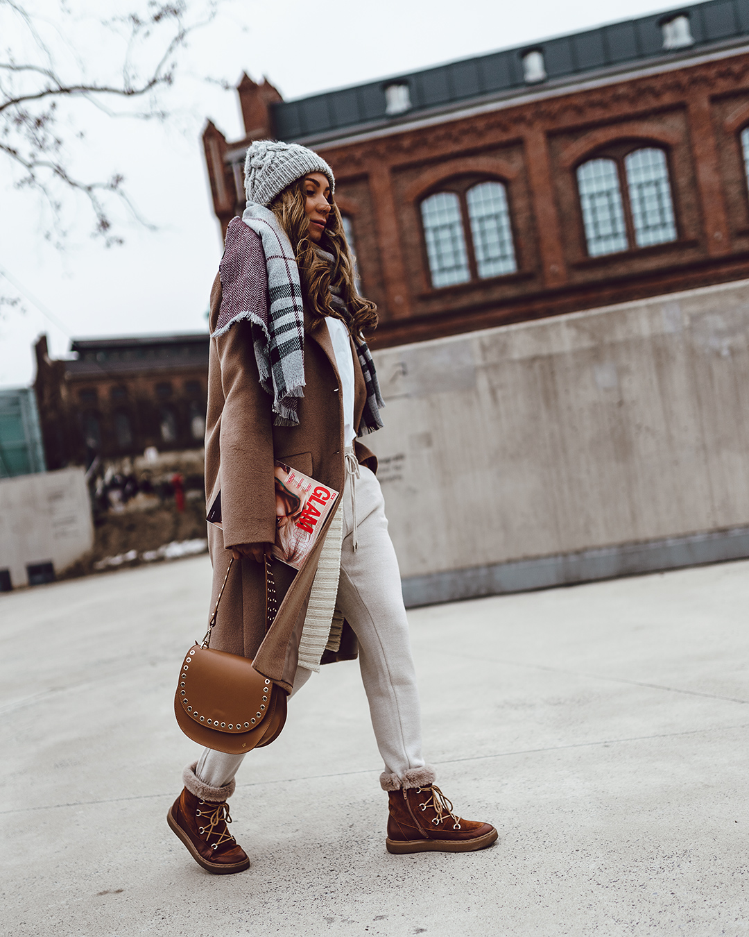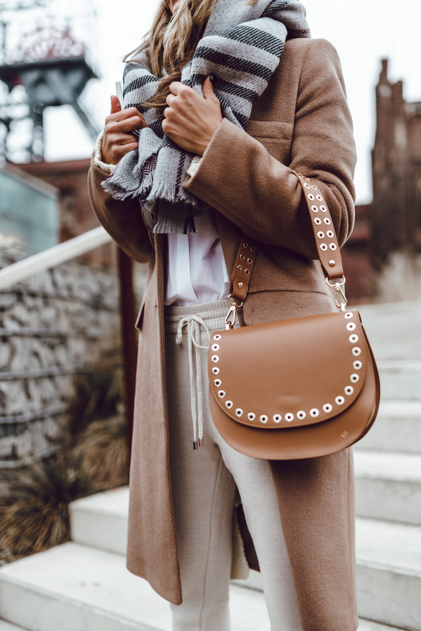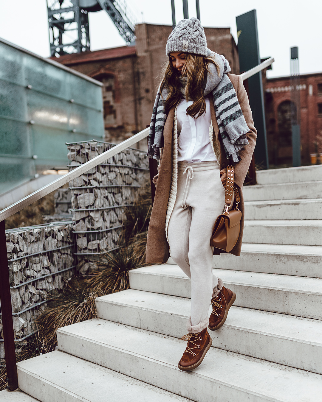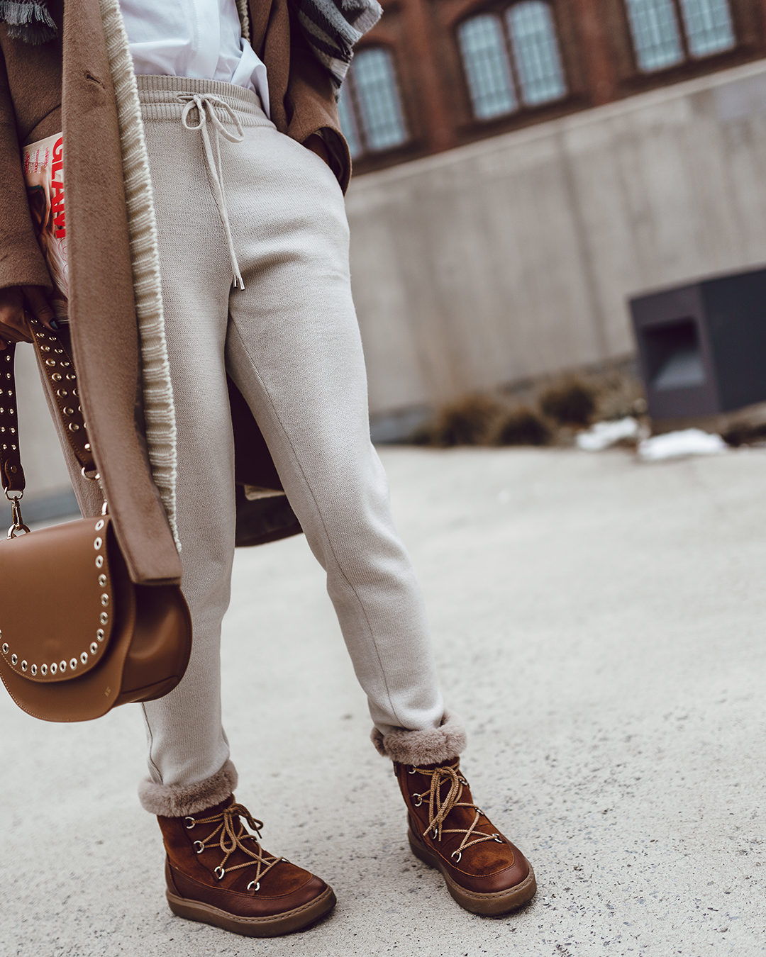 Dziś moja propozycja na codzienną zimową wygodę. Dresy, które wykonane są z bawełny i kaszmiru, pięknie wyglądają, a przy okazji są na prawdę ciepłe. To świetna alternatywa dla klasycznych dżinsów, którymi zimą czasami możemy już być znudzeni. Do tego sweterek, płaszczyk i gruby szal. Mam nadzieję, że ta stylizacja spodoba się Wam równie mocno jak poprzednie!