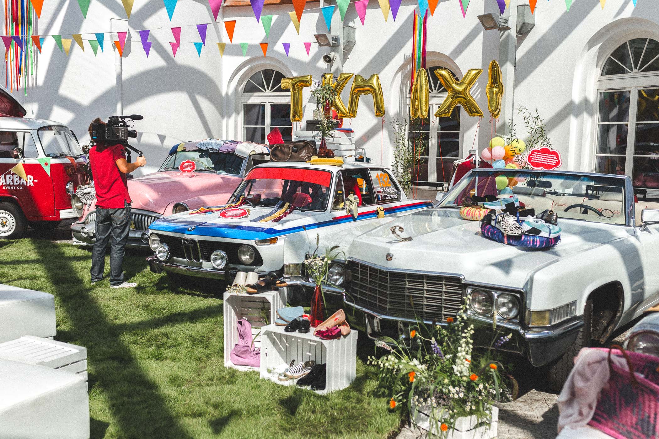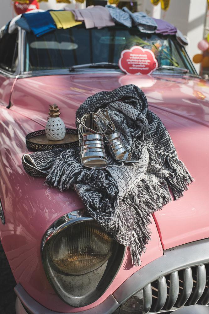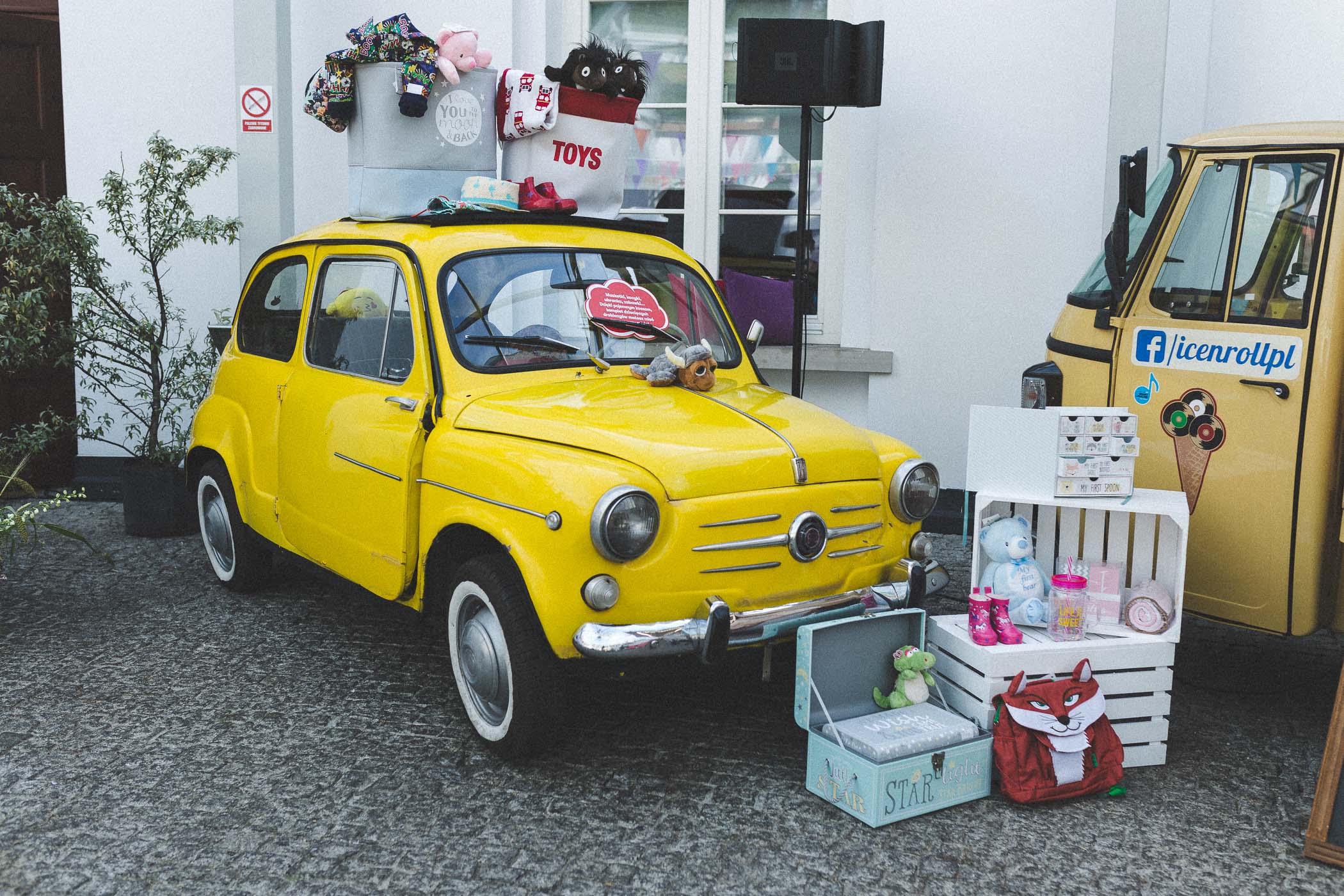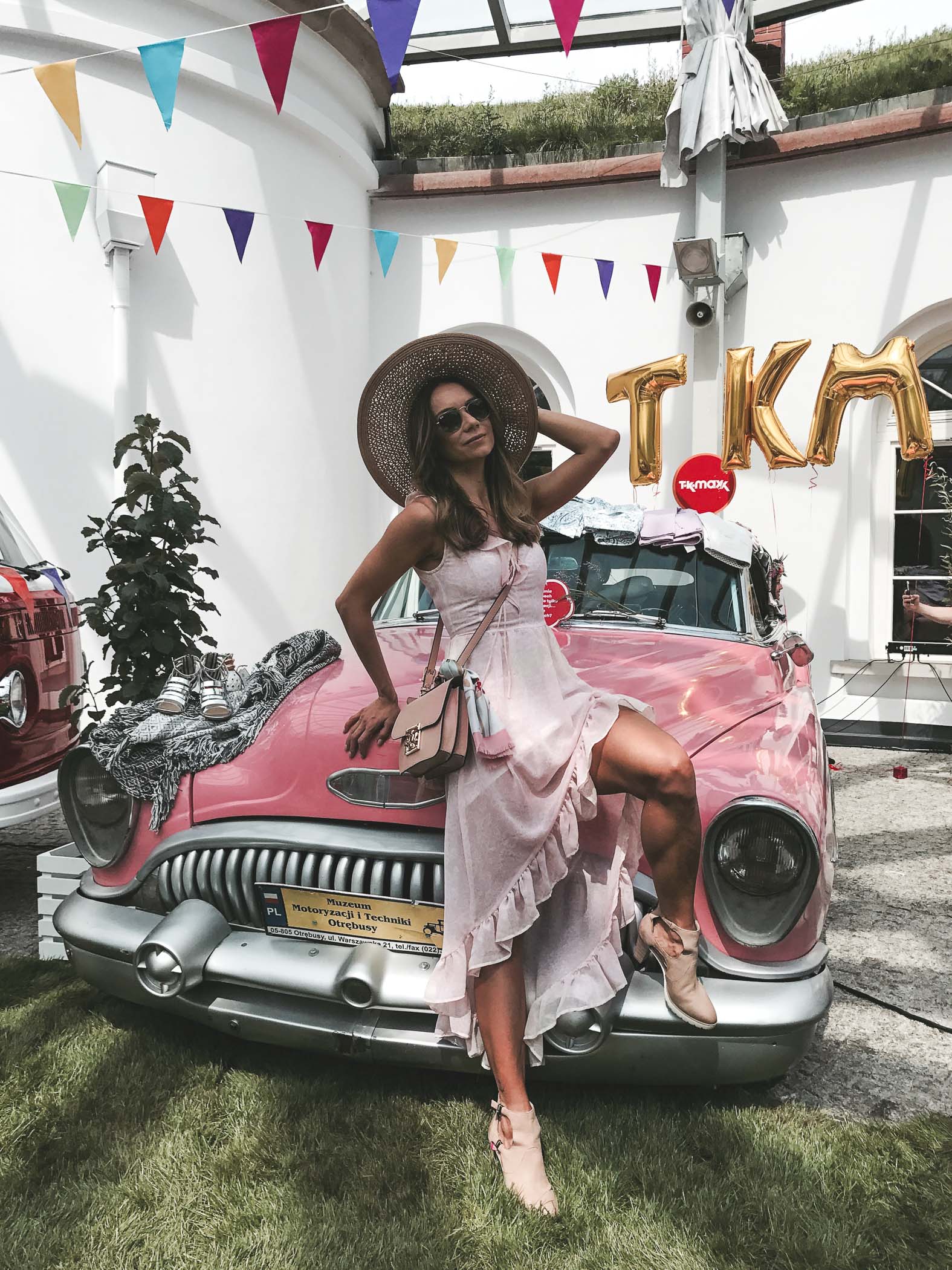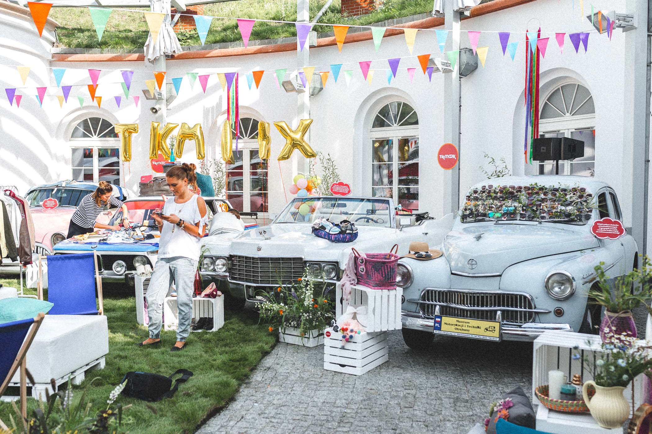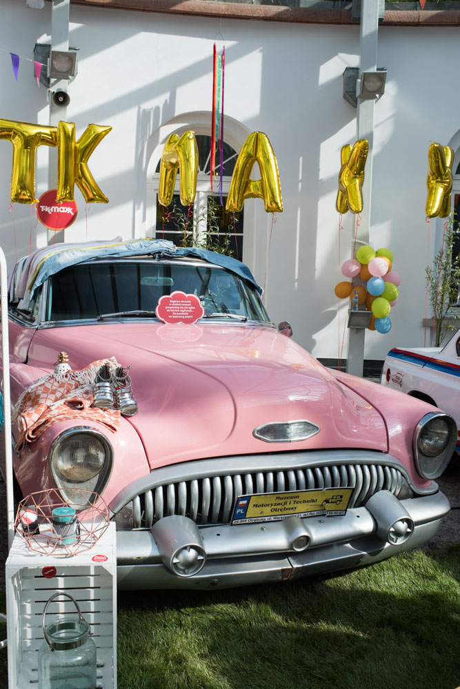 Kolejnym etapem elementem kampanii było spotkanie nas – blogerów oraz dziennikarzy w Forcie Sokolnickiego na warszawskim Żoliborzu. Gwoździem programu były unikatowe, oldschoolowe samochody symbolizujące działy TK Maxx, a całość utrzymana została w iście festiwalowym klimacie, pełnym kolorów, kwiatów, pysznego jedzenia oraz dobrej muzyki. Na naszą szóstkę (Ola Furka z Olciiak, Kamil Pawelski z Ekskluzywny Menel, Kasia Szymków z Jestem Kasia, Ania Skura z What Anna Wears, Ania Dominik ze Scraperka oraz ja) czekało zadanie specjalne od TK Maxx – wystylizowanie kultowych samochodów, tak by jednocześnie pokazać to, co najlepsze w poszczególnych działach TK Maxx. Ja dostałam kultowego Fiata 600, w którym stworzyć miałam dziecięcy pokój. Kosze na zabawki pełniły rolę bagażnika dachowego, tylne siedzenia posłużyły jako wygodne łóżko oraz kącik do czytania bajek. Nad wszystkim czuwał przyjaciel królik, który pilnował sterów za kierownicą. Zabawa była fantastyczna, a efekty jeszcze lepsze! Małe, żółte autko zamieniło się w magiczną, dziecięcą krainę i przeniosło mnie z powrotem do czasów dzieciństwa.
