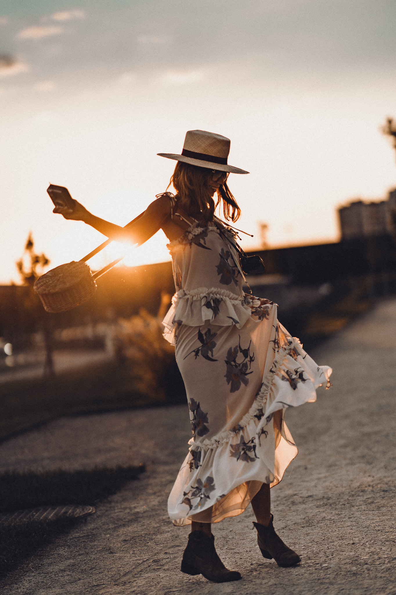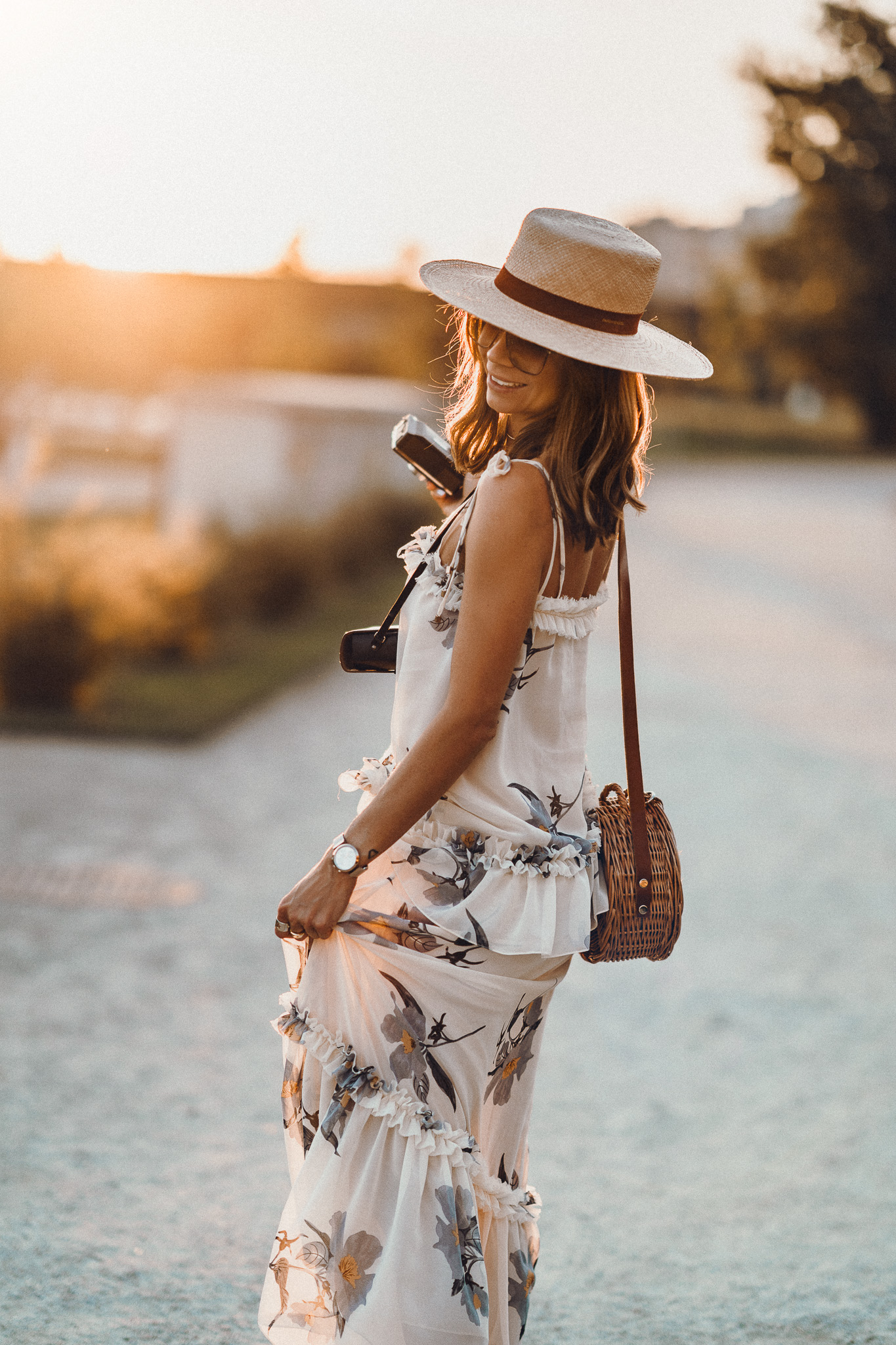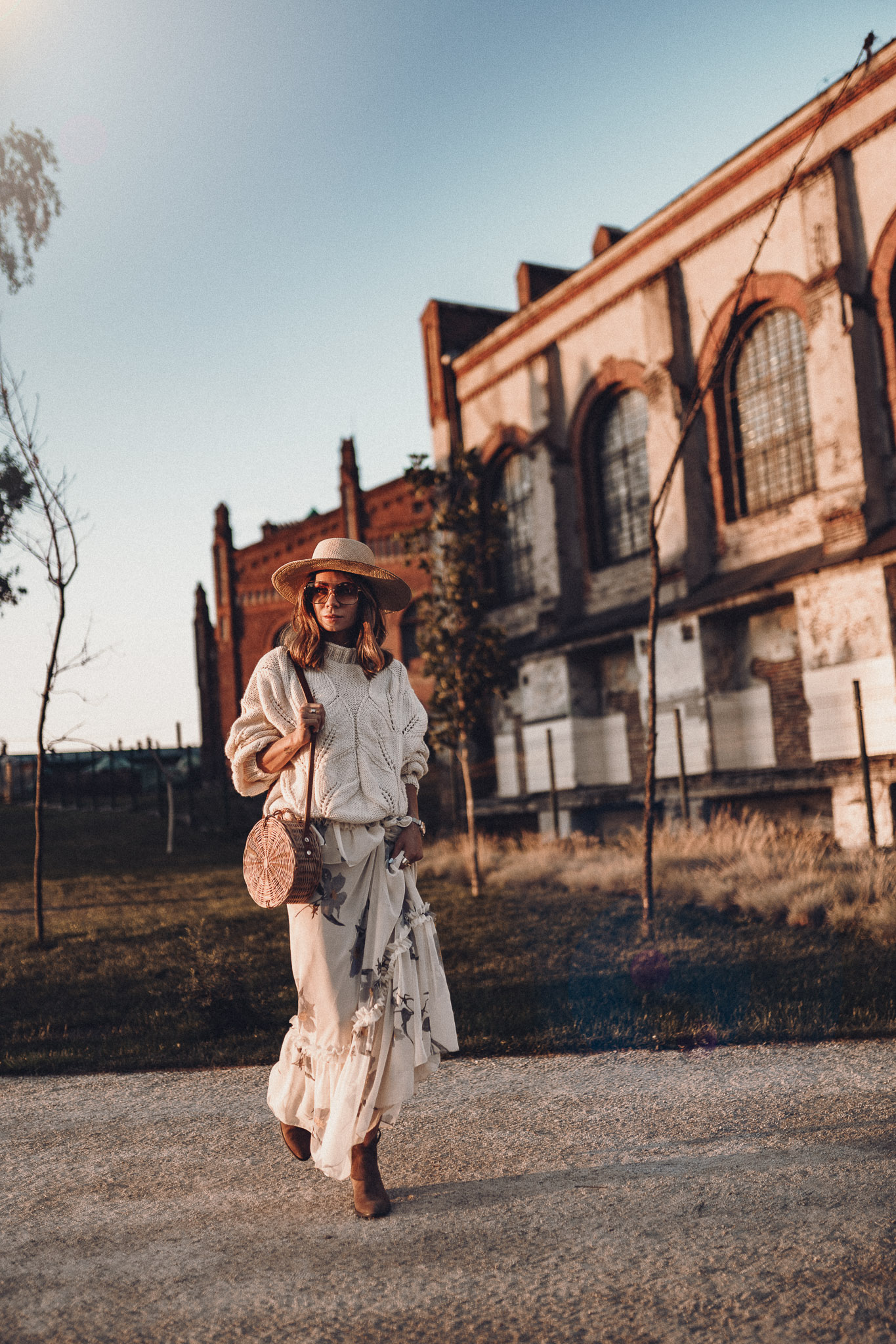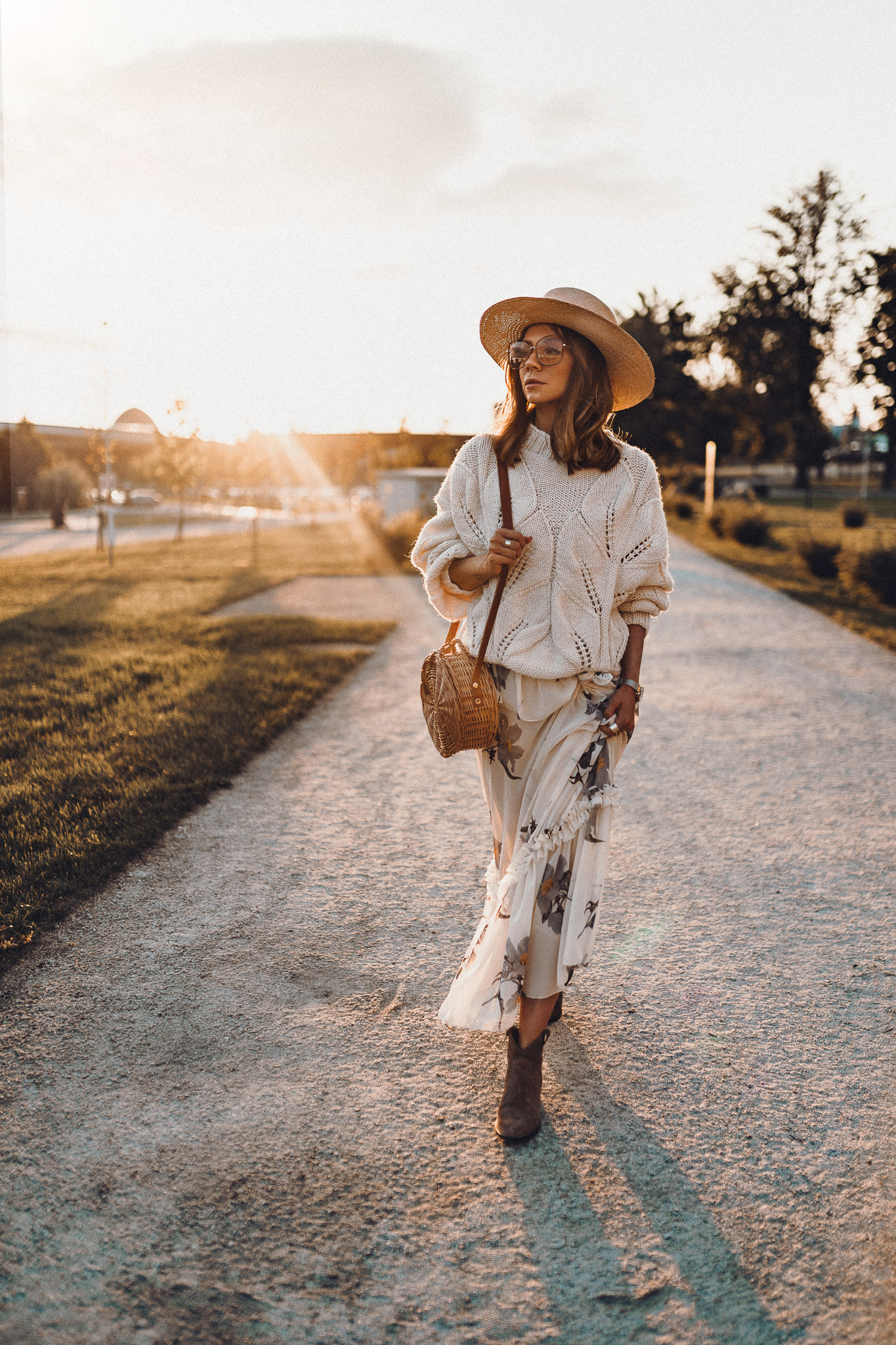 Jakiś czas temu nagrałam krótki filmik z tą stylizacją i wiem, ze bardzo się Wam spodobała. Długa, lekka sukienka i ciepły wełniany sweter. Motyw w kwiaty jest ponadczasowy, dodaje nam lekkości, kobiecości, sprawia, że wtapiamy się w 100% w letni klimat i czujemy go jeszcze bardziej.