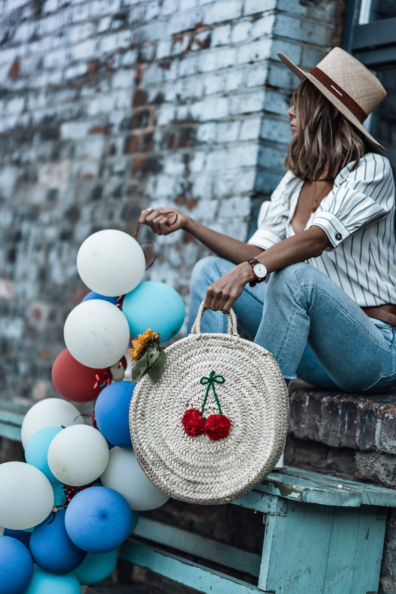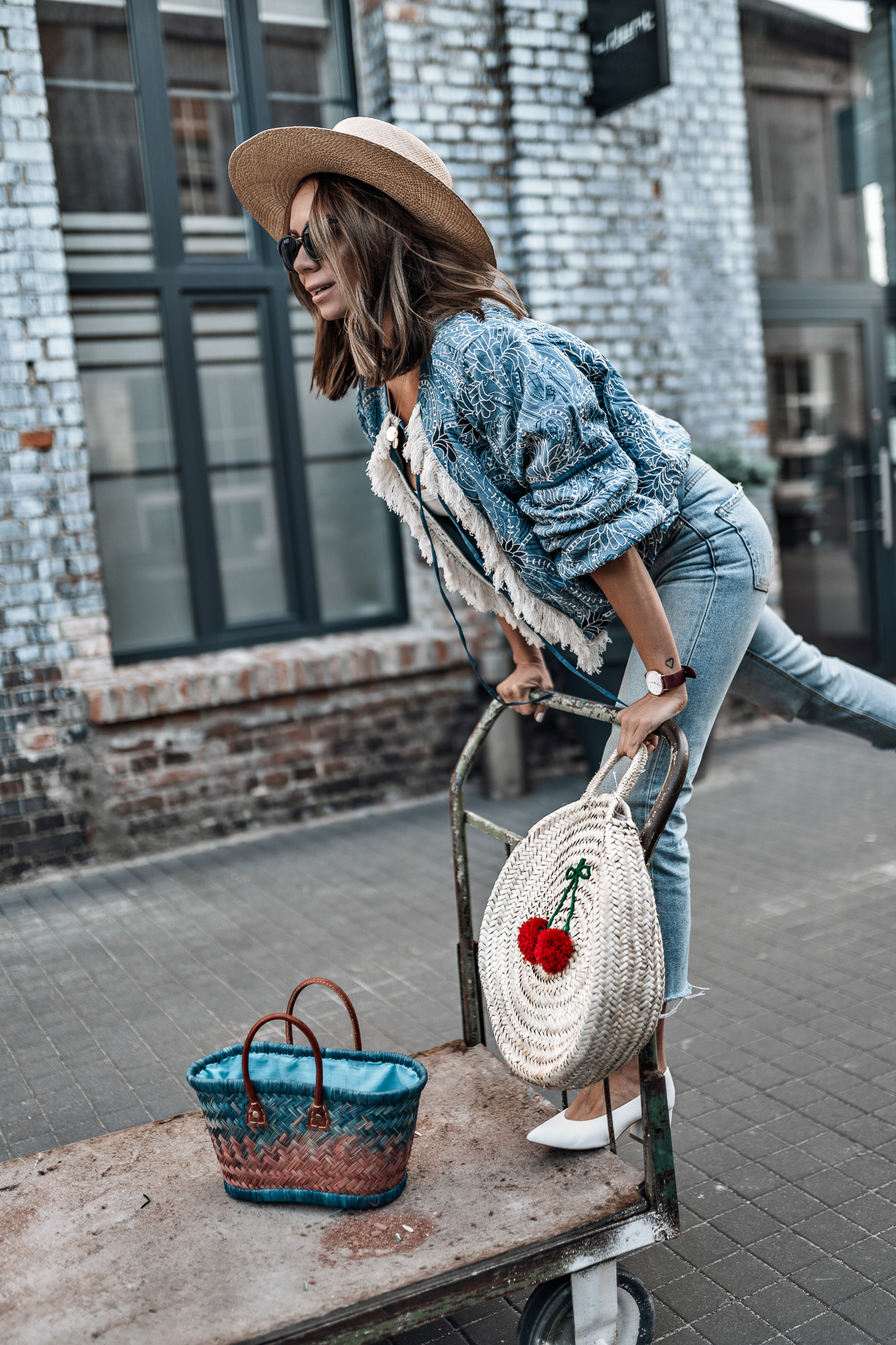Zobaczcie natomiast, jakie dodatki wybrałam do tych stylizacji?! Są to kosze, które tego lata robią w świecie mody sporo zamieszania. Nie służą nam już tylko na plaże, ale wychodzą z nami każdego dnia na ulicę. Wyglądają przepięknie i dodają smaczku do całości.