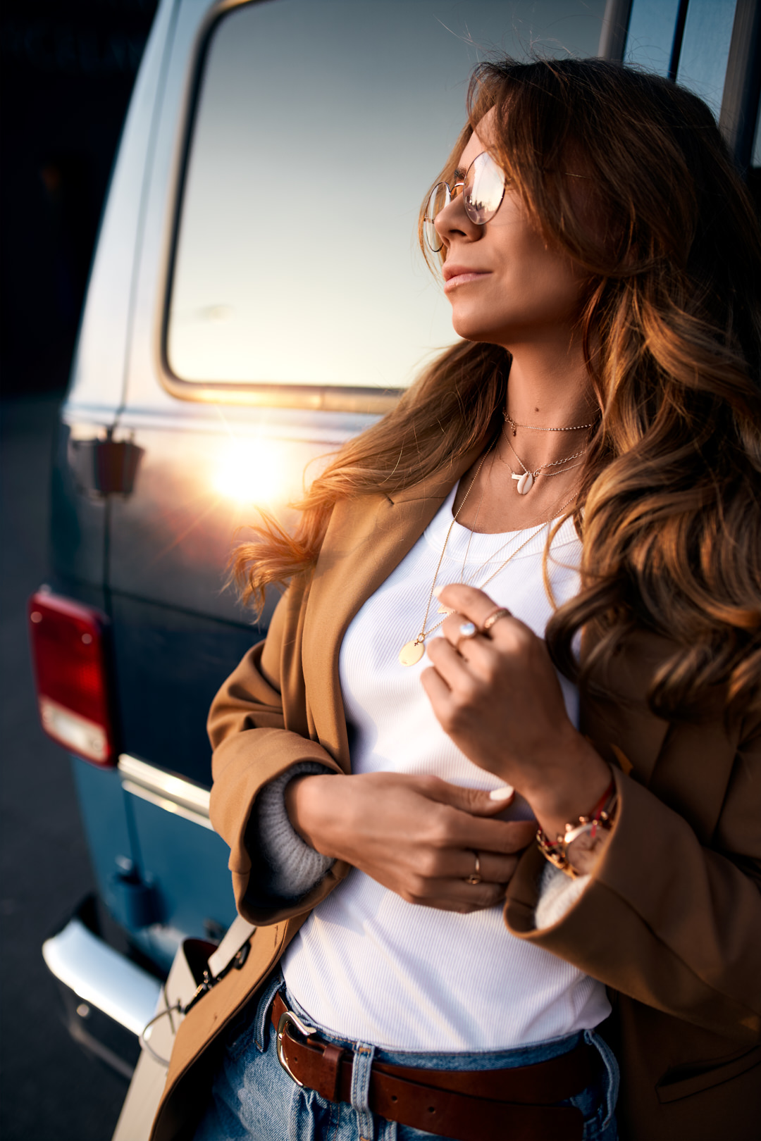 Stylizacja bardzo prosta, totalna klasyka i wygoda, idealna na co dzień. Z drugiej strony wystarczy w niej zmienić adidasy na szpilki i śmiało możemy ruszać wieczorem na miasto. Lubię ubierać się basic’owo i dobierać do tego oryginalne dodatki, aby nadać takiemu prostemu zestawowi pazura.