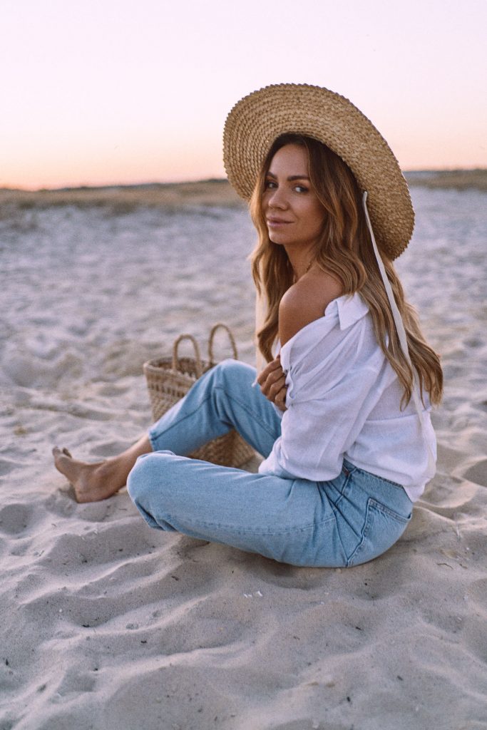 Zacznijmy od totalnej klasyki, biała koszula. Latem stawiam na lnianą, jest przewiewna i bardzo wygodna gdy nadchodzą upały. Taką koszulę świetnie można połączyć również ze strojem kąpielowym na plaży. Niezastąpionym gadżetem będzie również koszyk oraz okulary przeciwsłoneczne. Tu również postawcie na klasykę lub jakiś model w stylu vintage.