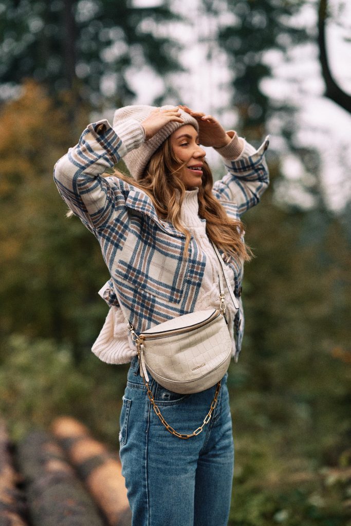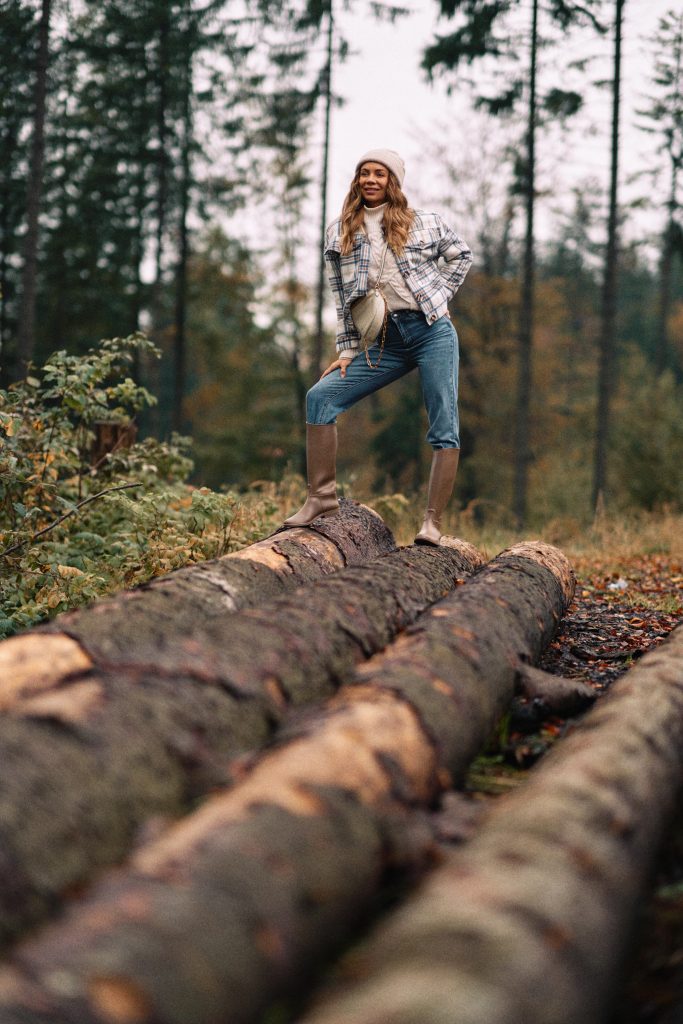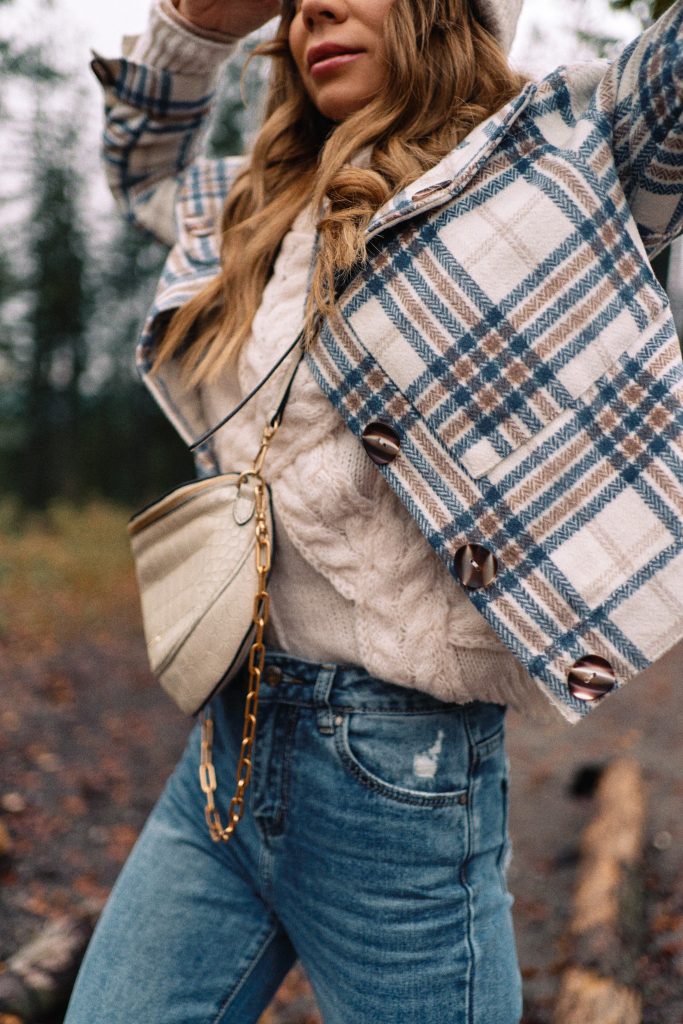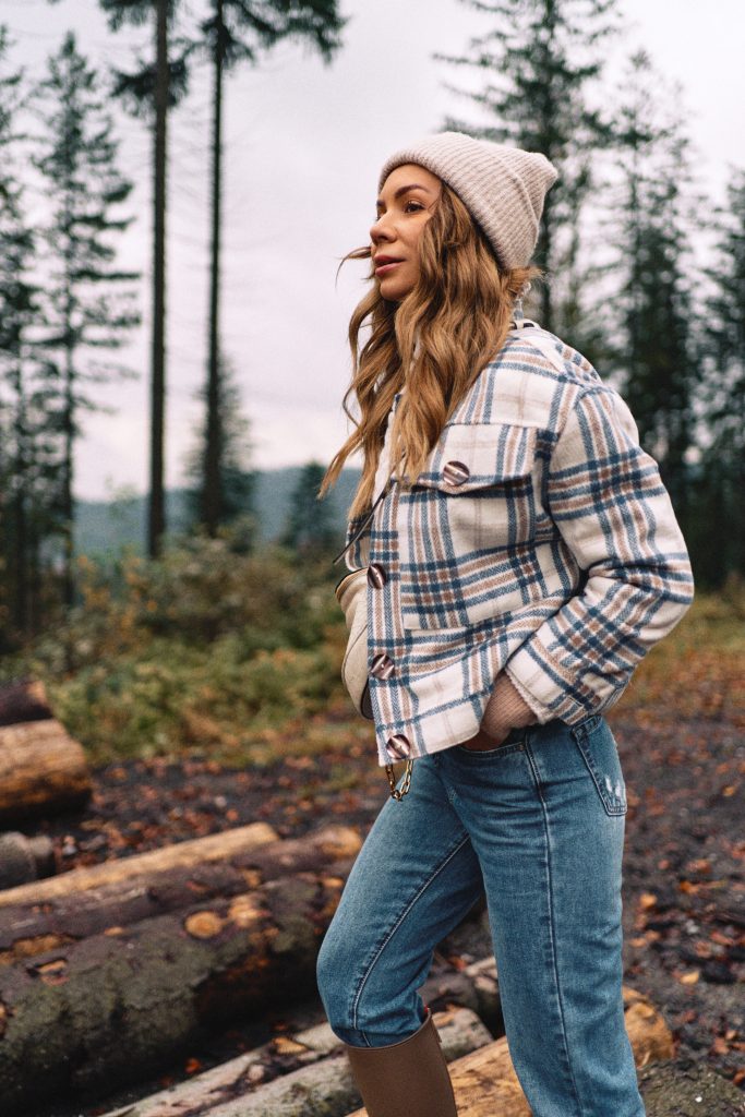 Flanelowa czy też flauszowa spokojnie zastępuje nam klasyczną kurtkę. Stworzysz z nią przepiękne, jesienne stylizacje. Doskonale wygląda z dżinsami, wełnianym swetrami, gładkimi golfami. Idealnie wygląda rozpięta, pokazując również to co macie ubrane pod spodem. Na jakie buty postawić? Jeśli wybieracie się na miasto, koniecznie sneakersy, a jeśli pogoda pozwoli to możecie pomyśleć o szpilkach. Na spacer w lesie polecam kalosze.