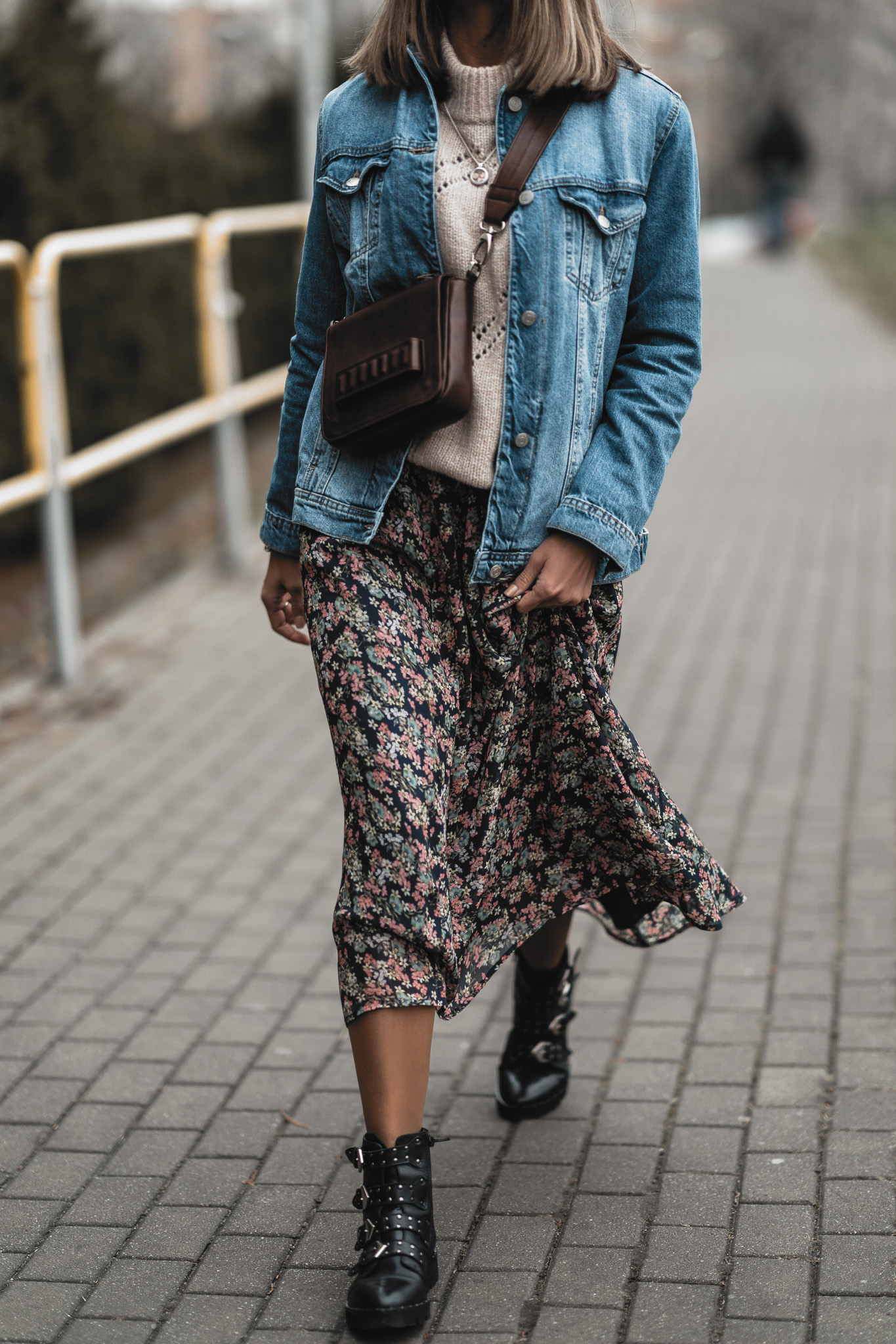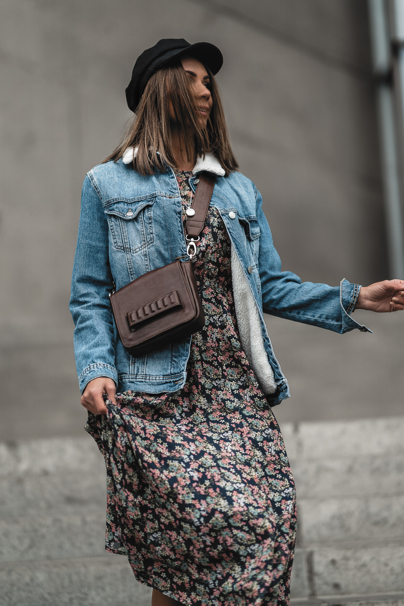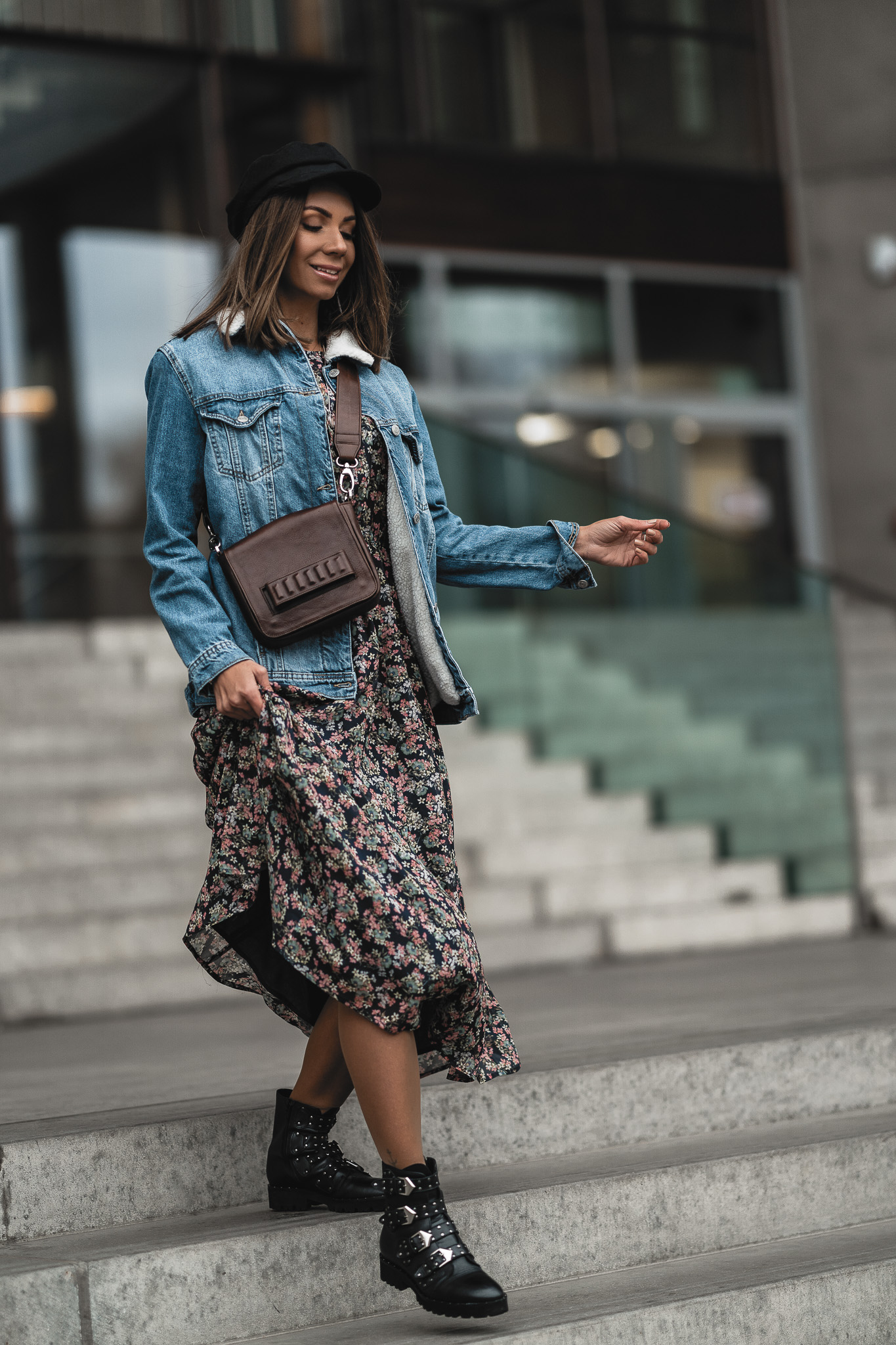 Bardzo spodobało mi się połączenie wzorzystej sukienki i jeansowej kurteczki. Strzał w dziesiątkę 🙂