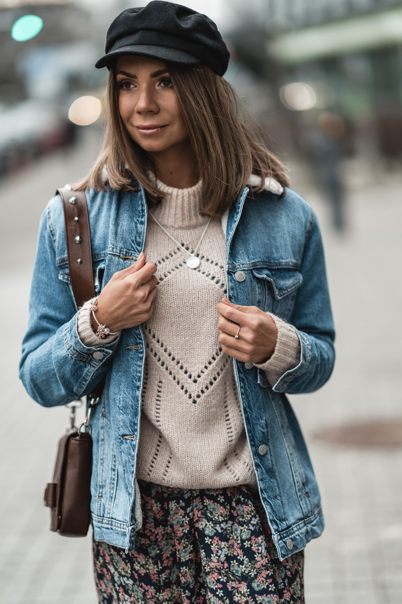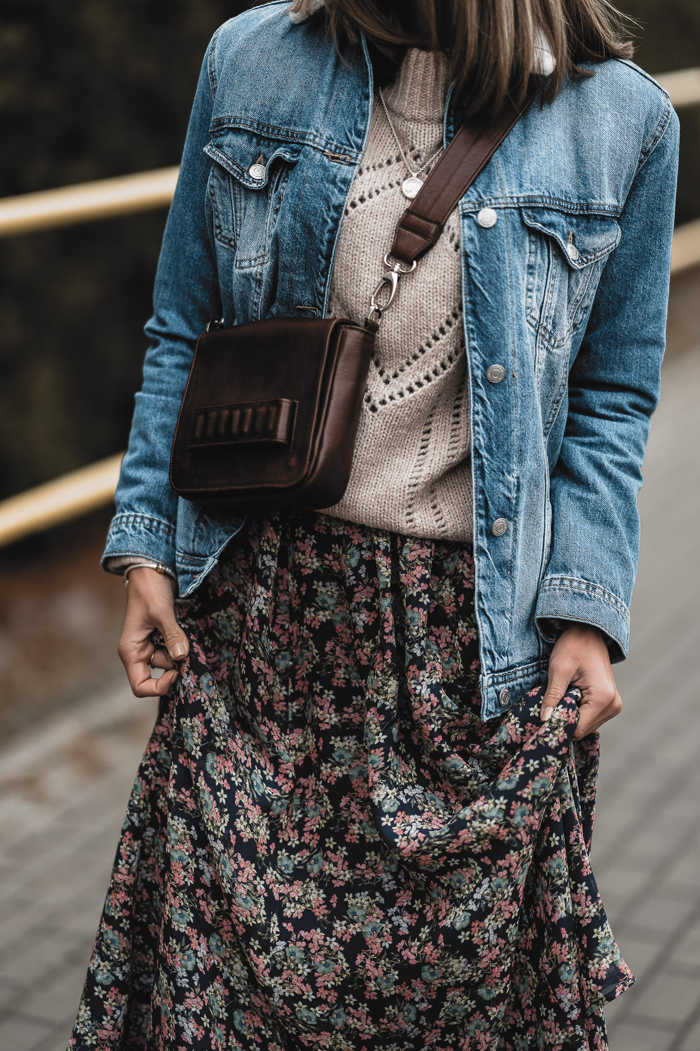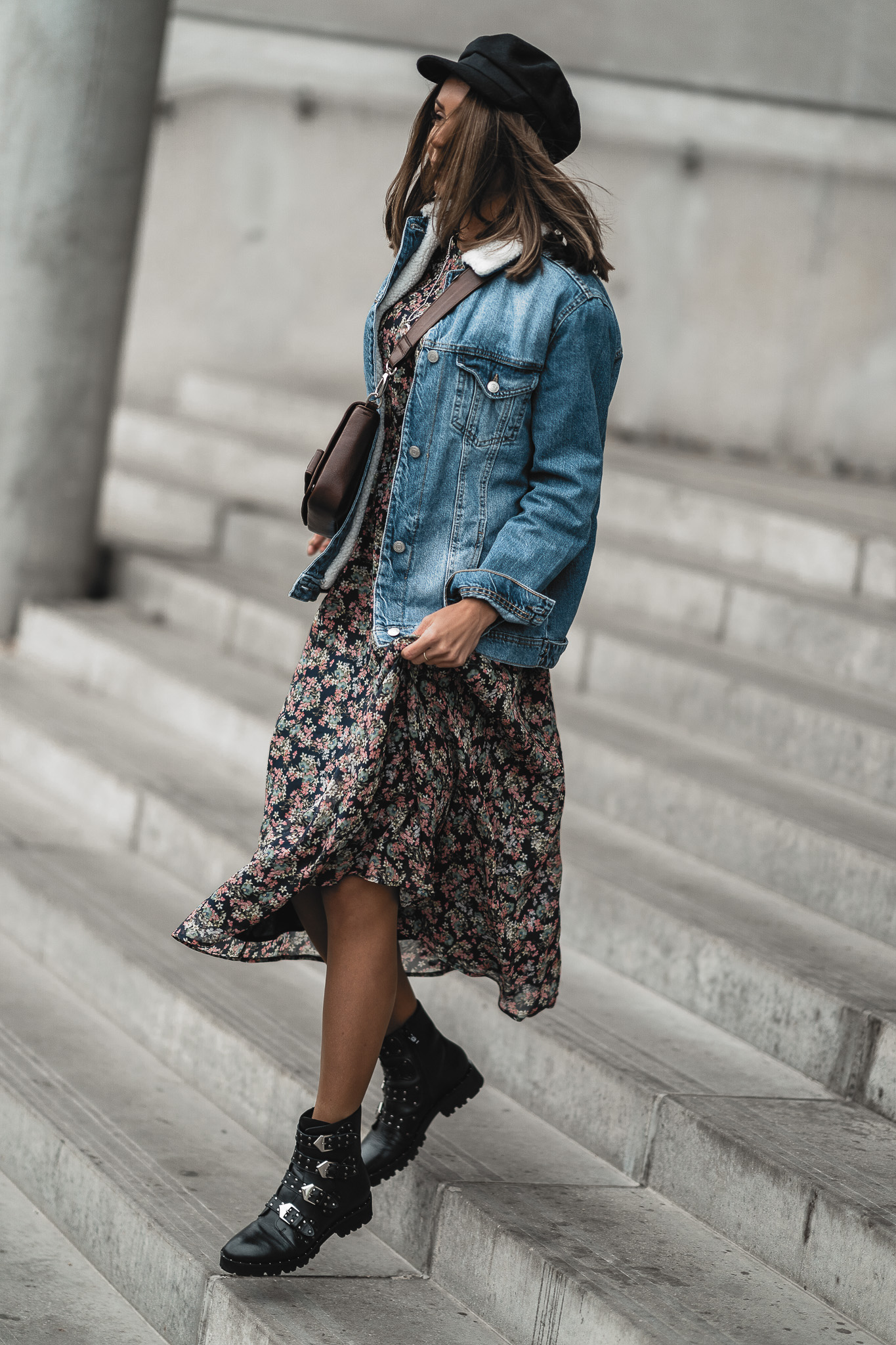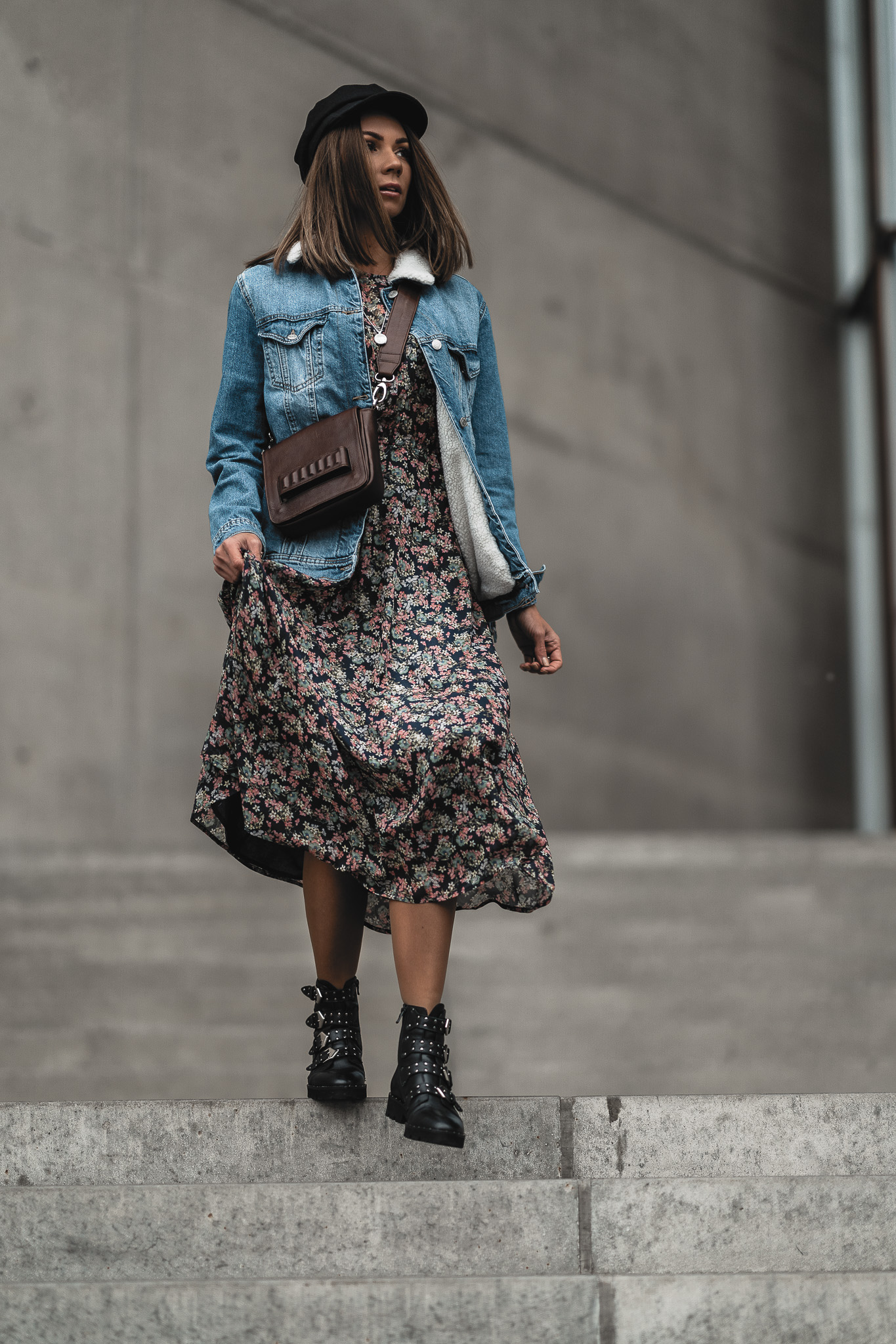Bardzo spodobało mi się połączenie wzorzystej sukienki i jeansowej kurteczki. Strzał w dziesiątkę 🙂