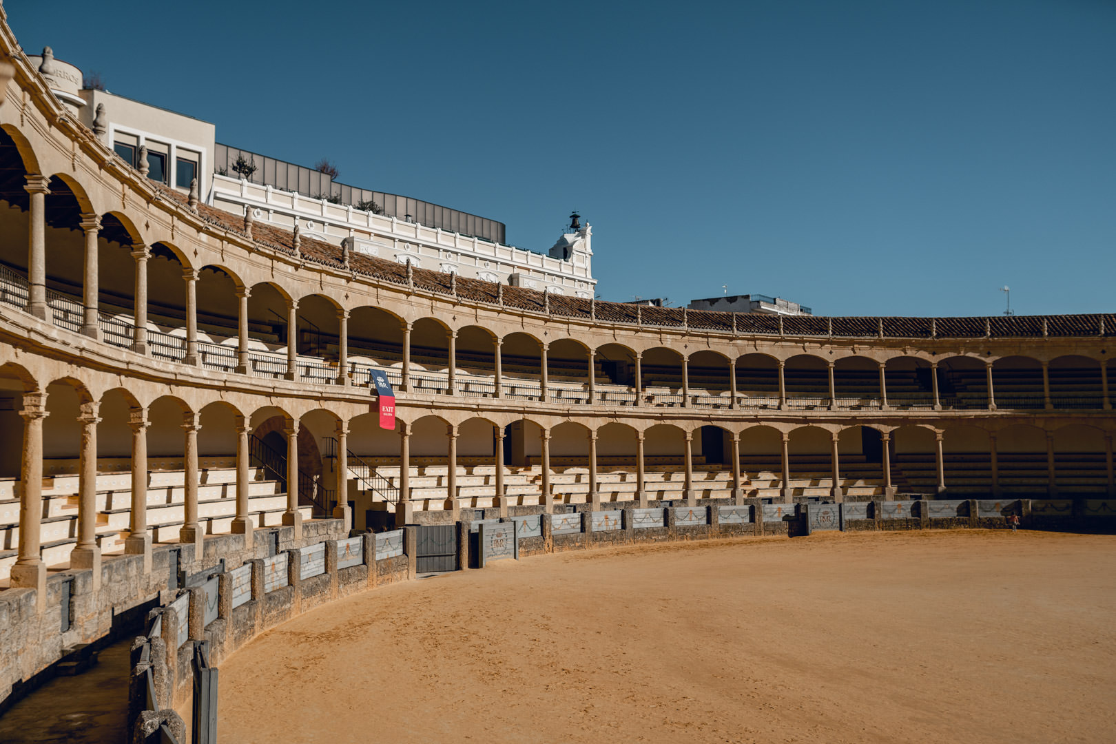 Plaza de Toros w Rondzie jest prawdopodobnie najbardziej znaną areną walk byków w Andaluzji oraz jedną z najstarszych w całej Hiszpanii. Wybudowana w latach 1783-1785 była pierwszą, w której tradycyjne, drewniane belki nośne zostały zastąpione przez kamień. Cały kompleks o średnicy ponad 60 metrów składa się z dwóch kondygnacji otoczonych przez piękne arkady. Dzięki zadaszonym trybunom (które są w stanie pomieścić około 5000 oglądających) widzowie mogą brać udział w widowisku nawet podczas deszczu i gorszej pogody.