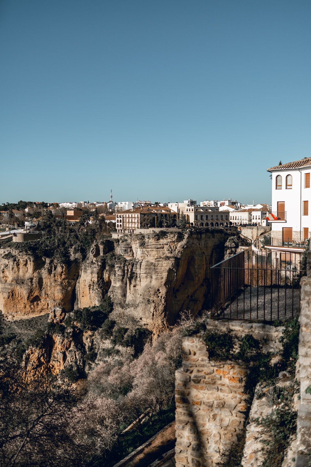 Most Puente Nuevo jest niesamowity. Kamienna konstrukcja wysoka na 120 metrów spina ze sobą dwa brzegi pionowego wąwozu El Tajo, którym płynie rzeka Guadalevín. Pomyślcie tylko, że w potrzeba było aż 42 lat, by ukończyć tę budowlę! „Nowy most”, który faktycznie jest najnowszym w Rondzie bynajmniej nie jest nowy, bo został oddany do użytku w 1793 r. Budowlę tę można podziwiać z kilku miejsce w miasteczku dzięki temu, że wąwóz rzeki bardzo malowniczo zawija i tworzy serpentyny. Warto zejść w dół wąwozu na punkt widokowy poniżej Casa don Bosco, by zobaczyć most z nieco innej perspektywy
