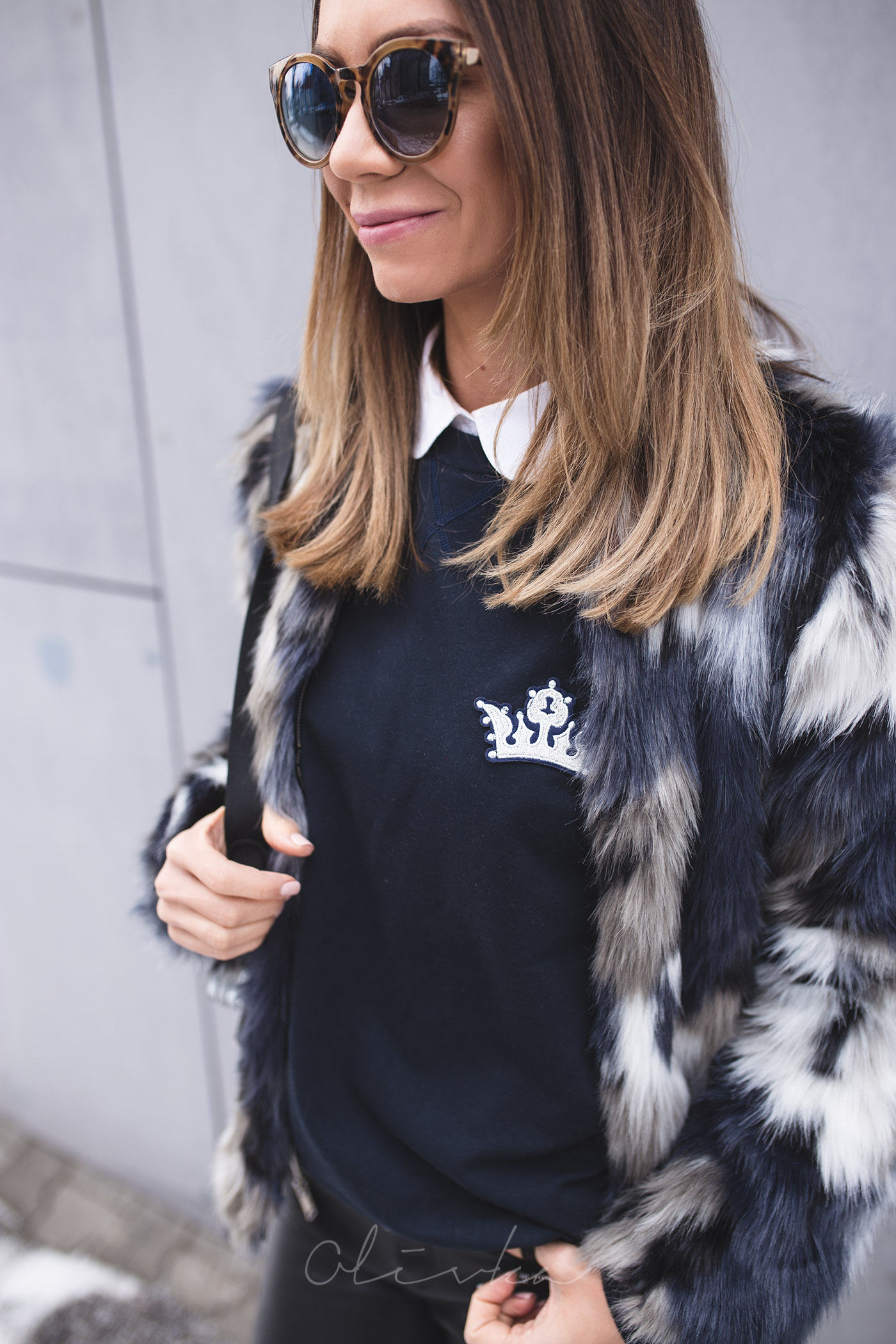Góra zestawu mistrzowska 🙂 Jestem zaskoczona jak świetnie zgrało się to futerko z białym kołnierzykiem <3