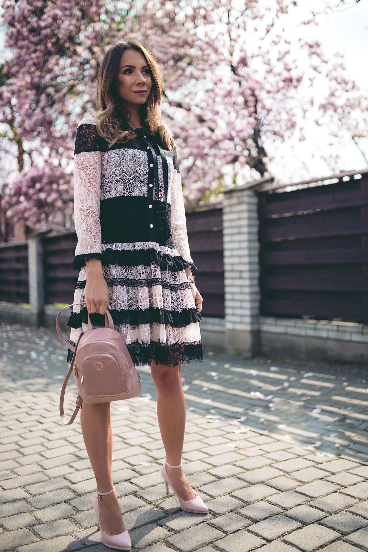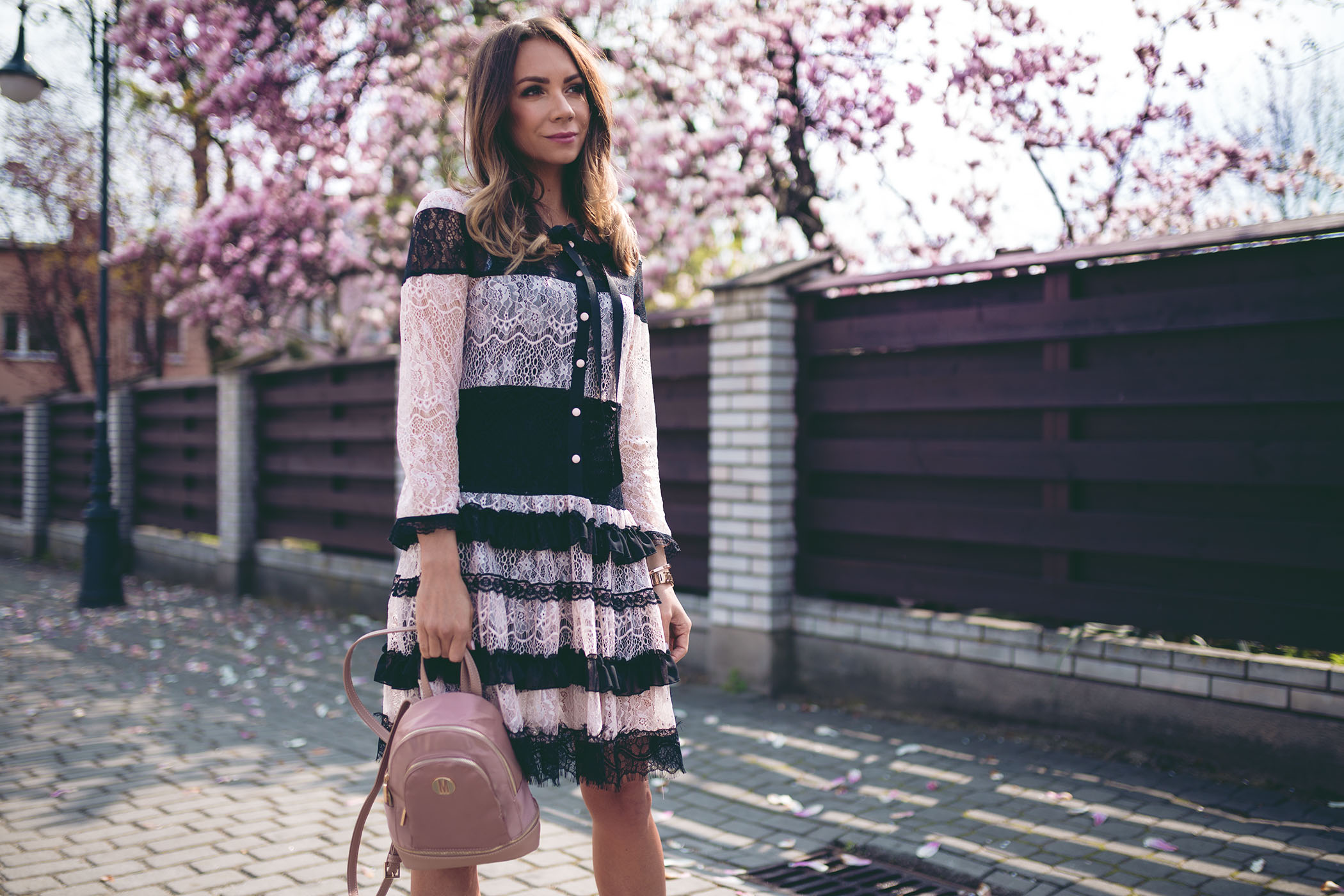 Dziś chciałabym Wam pokazać zestaw, który sprawdzi się zarówno na co dzień, ale również posłuży Wam na jakieś ważne uroczystości, randkę, czy wyjście do klubu. Wspominałam Wam już nie raz, że najbardziej lubię właśnie takie sukienki z których możemy wyczarować zestawy typu dzień&noc, jest to idealne rozwiązanie zwłaszcza wtedy gdy jesteśmy naprawdę zabiegane i nie mamy możliwości zmiany garderoby w ciągu dnia, ale również bardzo praktyczne. Wystarczy, że szpilki zamienimy na czarne adidasy lub baletki i mamy piękny, dziewczęcy zestaw na dzień.