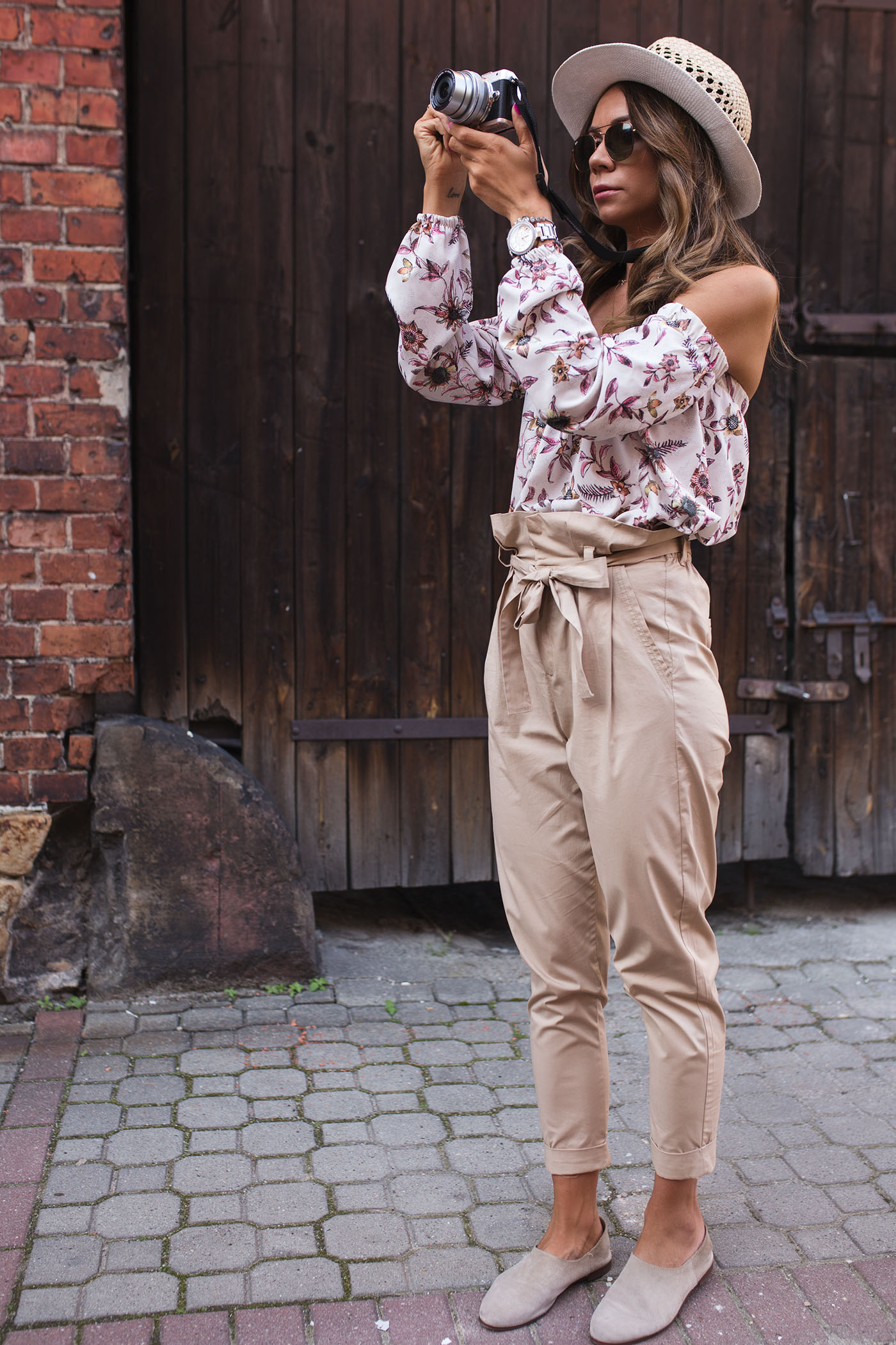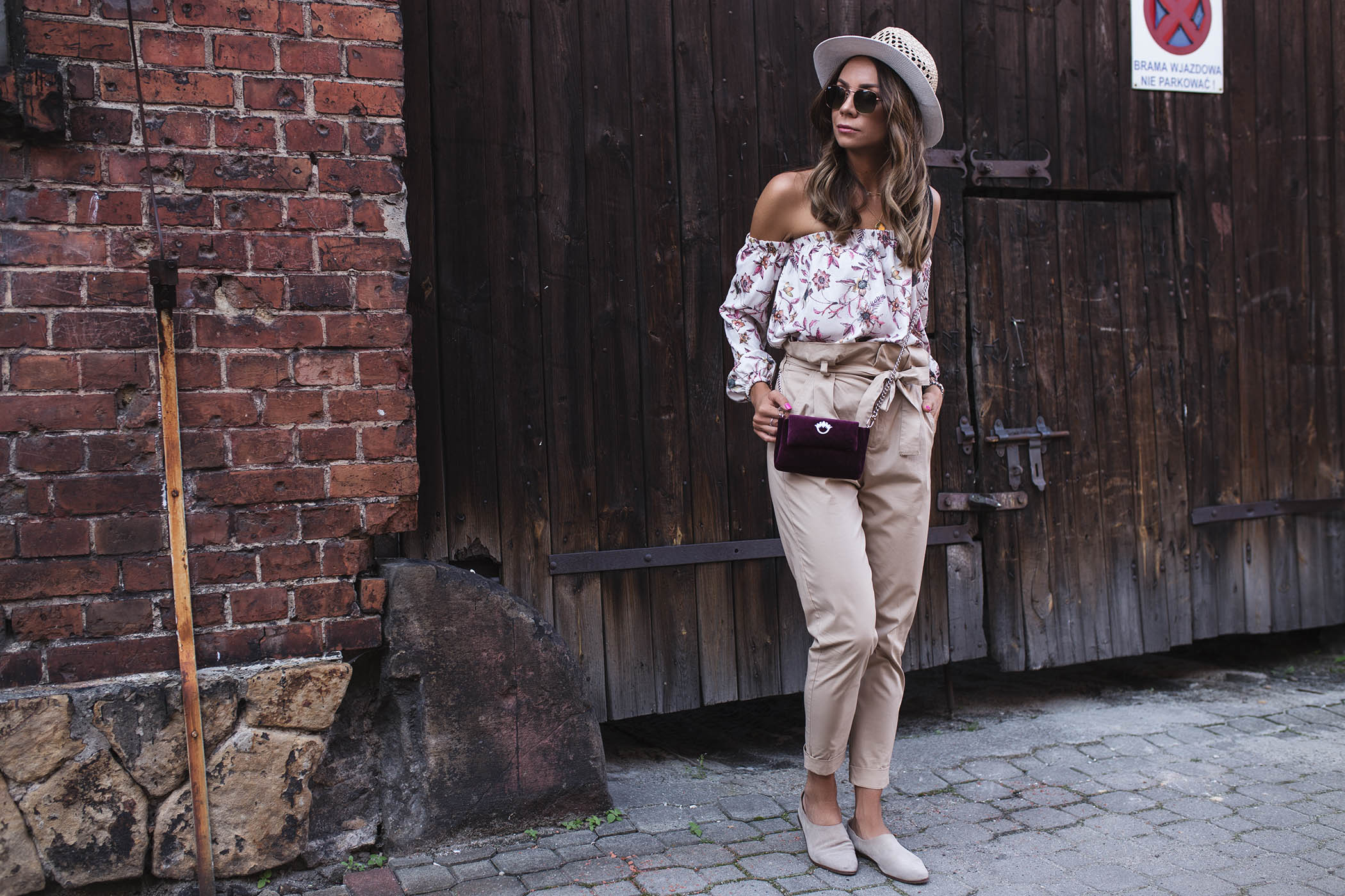 Wy też nie bójcie się zaszaleć z kolorami, kiedy jak nie właśnie latem? To najlepsza pora. Uwielbiam bluzki z odkrytymi ramionami, mogę nosić je do szortów, spódniczek czy właśnie długich spodni. Odsłonięte ramiona, zwłaszcza gdy są jeszcze skąpane w słońcu dodają niezwykłego uroku. Wiem, że część z Was ma problem z doborem bielizny do tego typu bluzeczek, ja polecam te z odpinanymi ramiączkami.