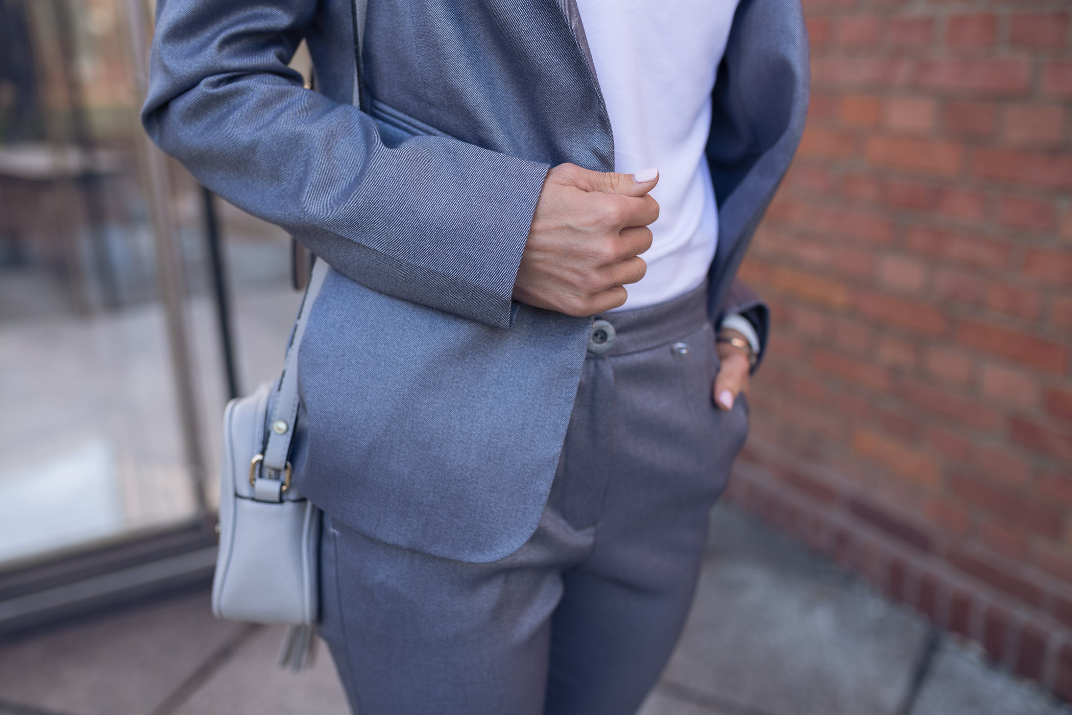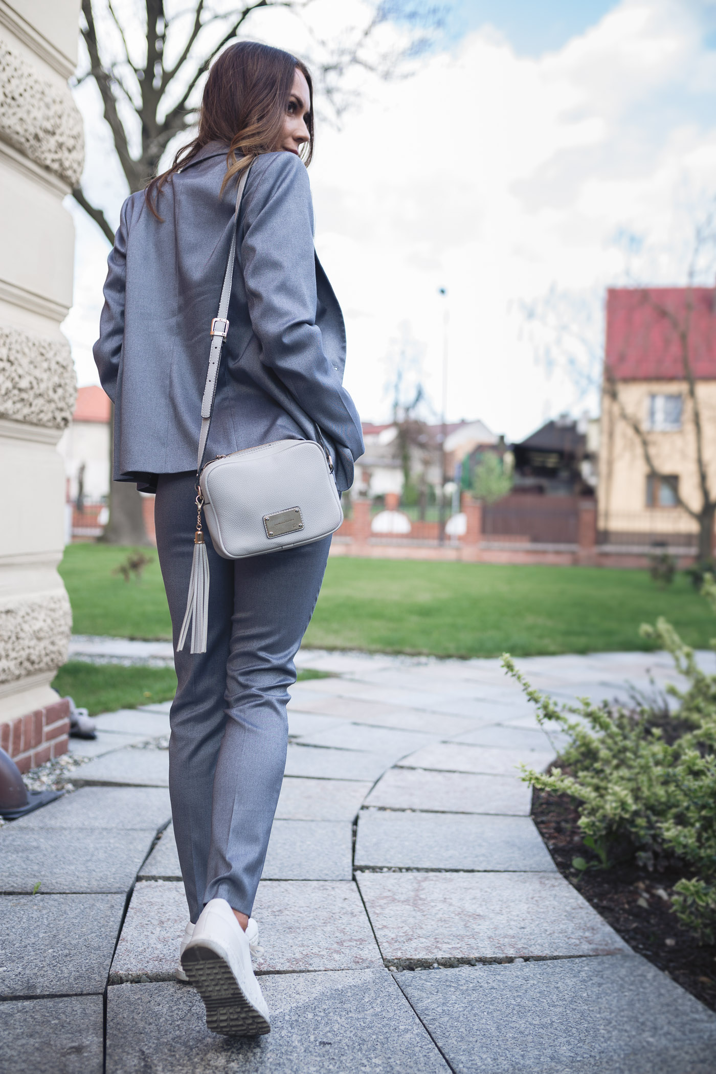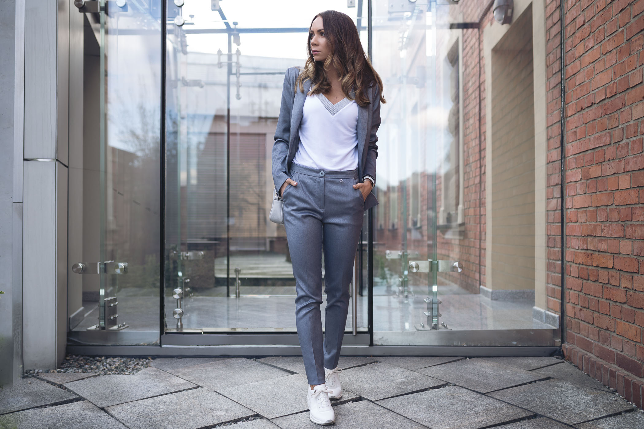 Z męskiego punktu widzenia widok kobiety w dobrze skrojonym garniturze niesamowicie działa na zmysły. W takim zestawie kobieta wygląda elegancko, jest pewna siebie, a przy okazji bardzo kobieca. Poniżej pokazuję Wam, jak nosić go na dwa sposoby, wystarczy zmienić buty i mamy wersję formalną oraz mniej oficjalną. Dlatego nie martwcie się, że zostanie wykorzystany tylko na jedną okazję. Pamiętajcie jednak, aby wybrać taki, który jest ładnie dopasowany oraz z dobrego materiału.