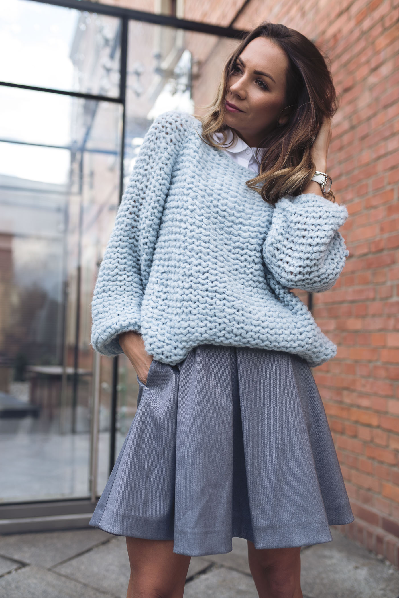 Zestaw numer dwa, to połączenie klasyki z dziewczęcą nutą. Klasyczna spódnica, która może być wykorzystana w codziennej stylizacji, do sweterka, prostego t-shirtu lub możecie stworzyć wersję bardziej elegancką i dobrać do niej białą koszulę. Sweterek natomiast to tak uniwersalna rzecz w szafie, że posłuży nam na co dzień.