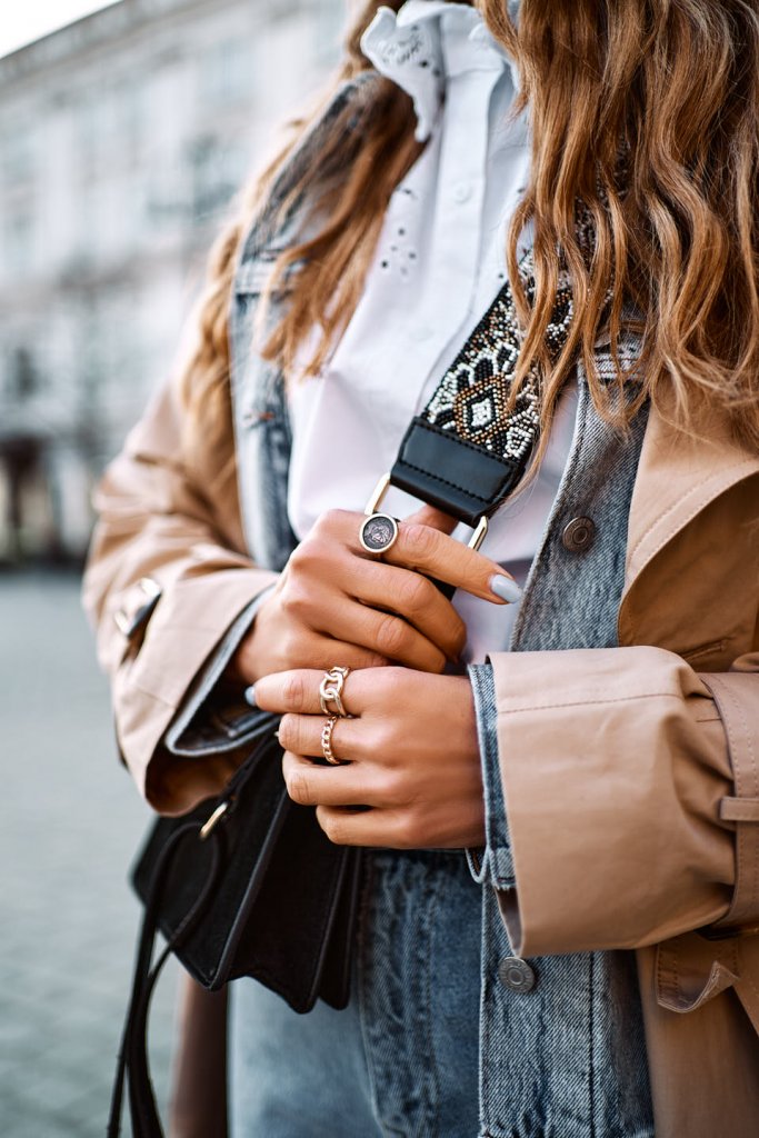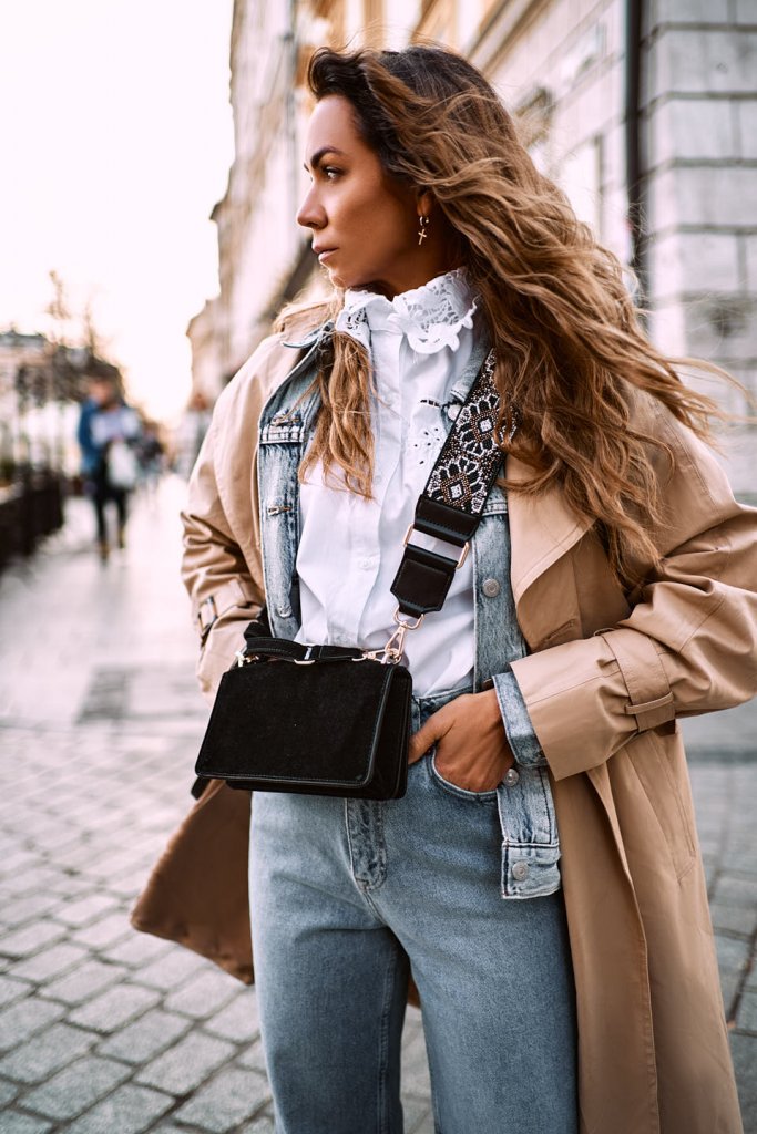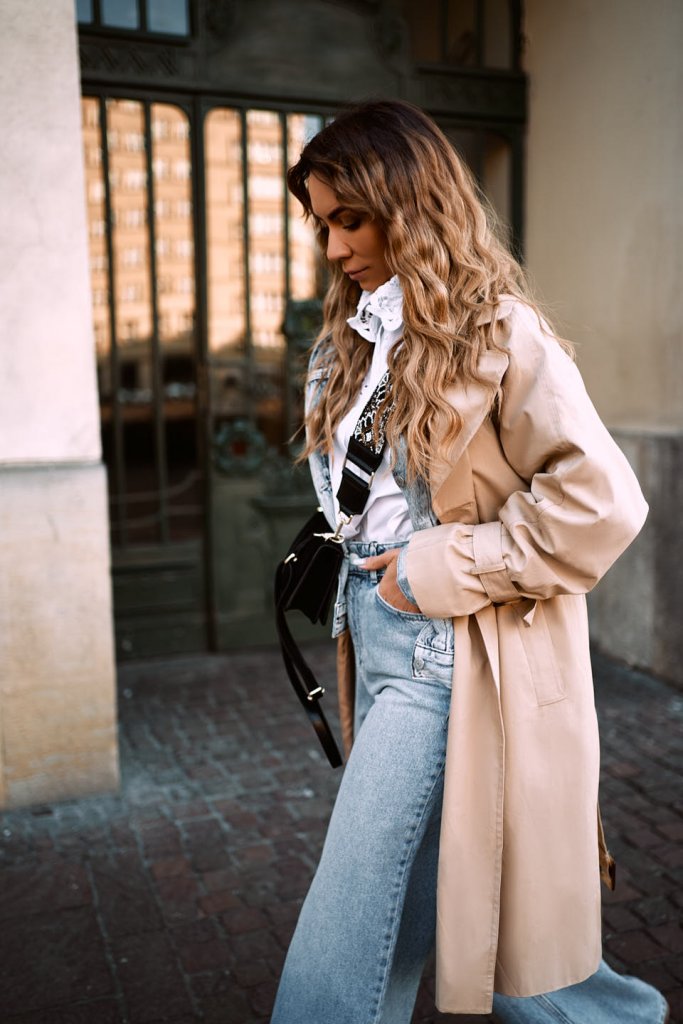 Dziś pora na kolejną propozycję z wiosennym trenczem. Tym razem w klasycznym, kremowym kolorze. Najmodniejsze w tym sezonie szeroki dżinsy oraz biała bluzeczka z bardzo ciekawym kołnierzykiem. Mam nadzieję, że całość się Wam podoba? Jak zwykle dajcie znać czy trafiłam w Wasze gusta?