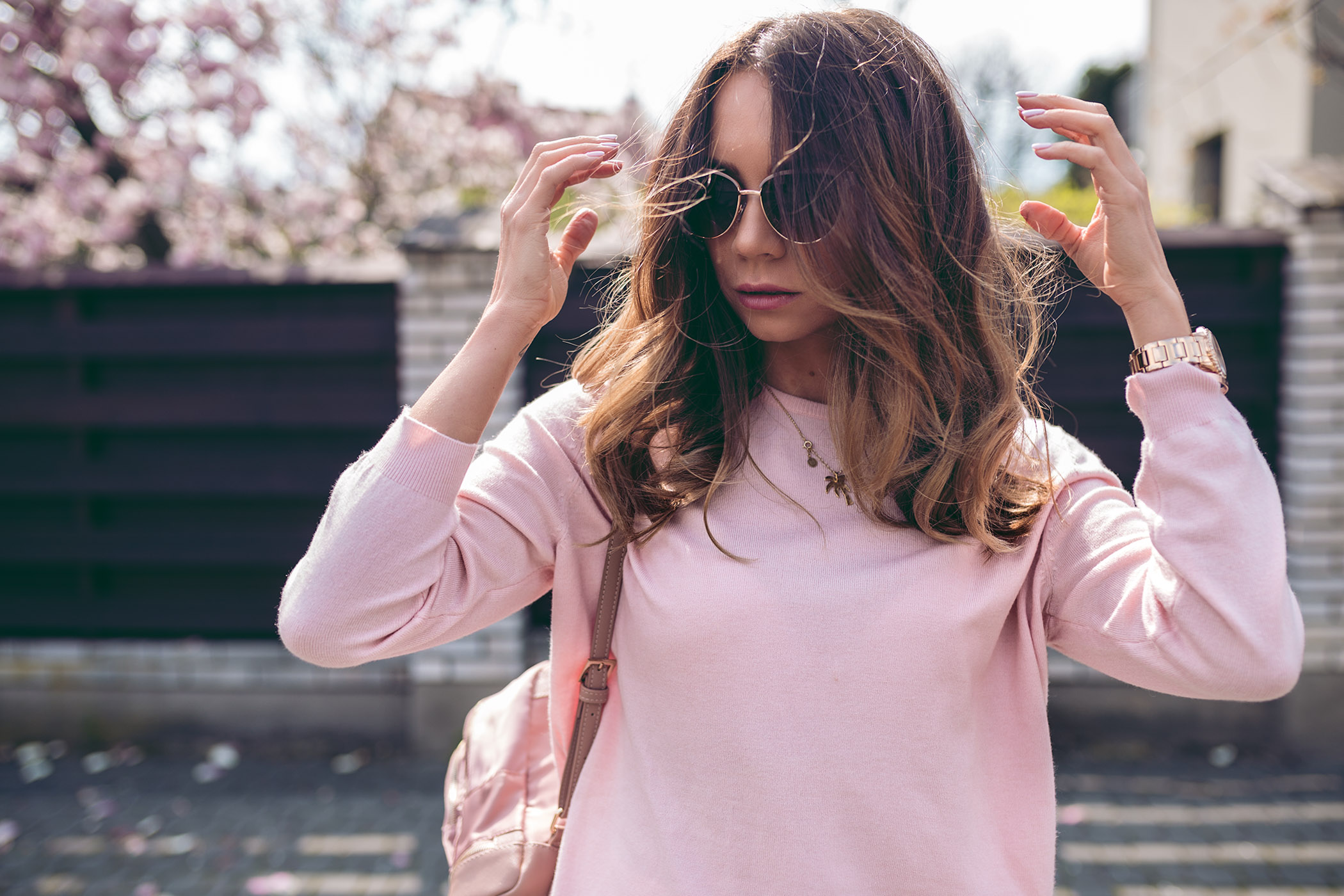 Spódnicę tą pokazuje Wam dziś w wydaniu mniej eleganckim, ale wyobraźcie sobie, że ten lekki sweterek zastąpimy gładką bluzeczką na ramiączkach lub rękawkiem i zupełnie zmienia się nam jej wygląd.