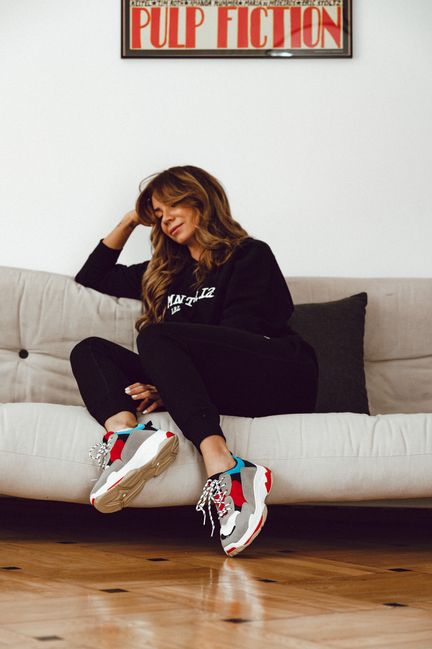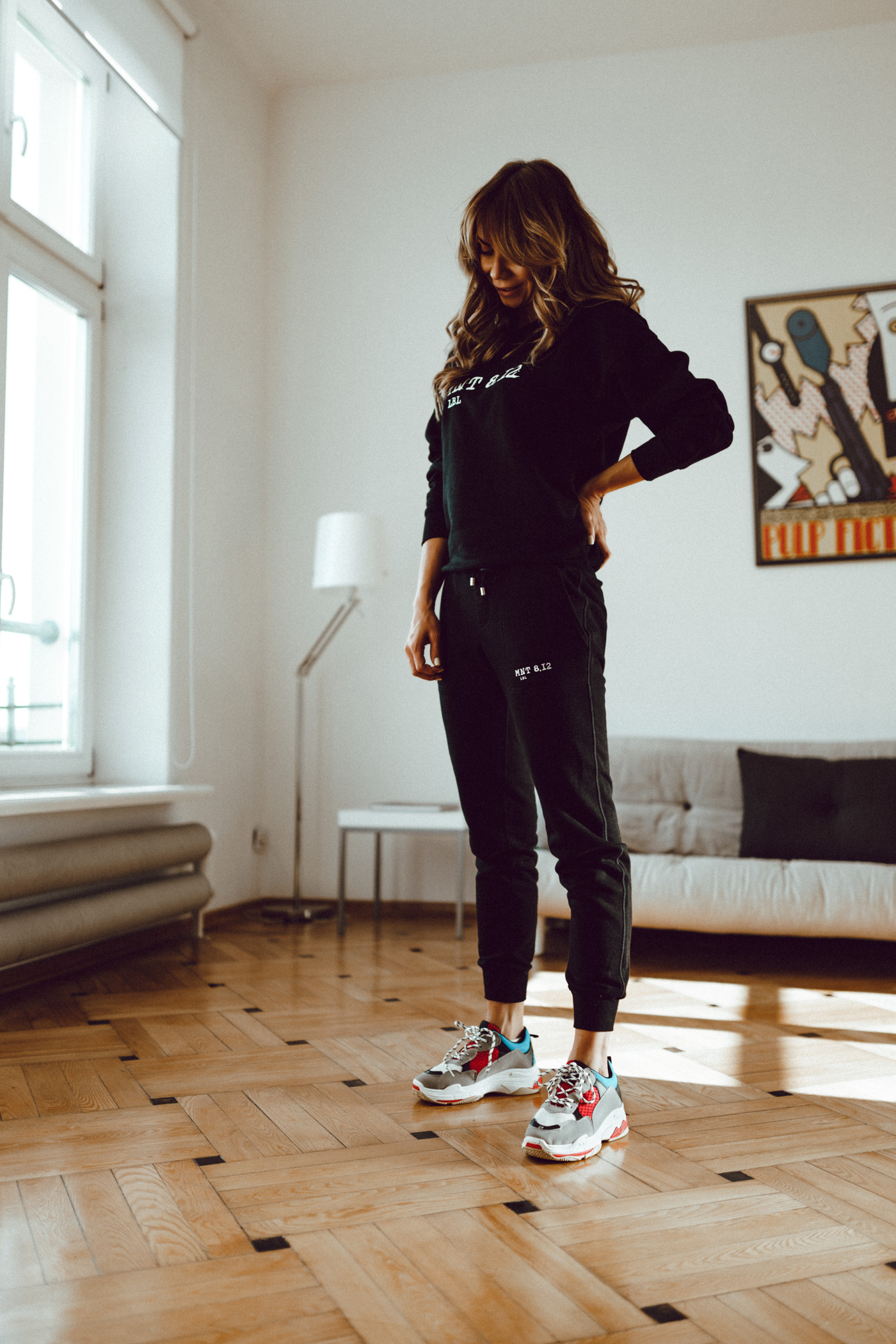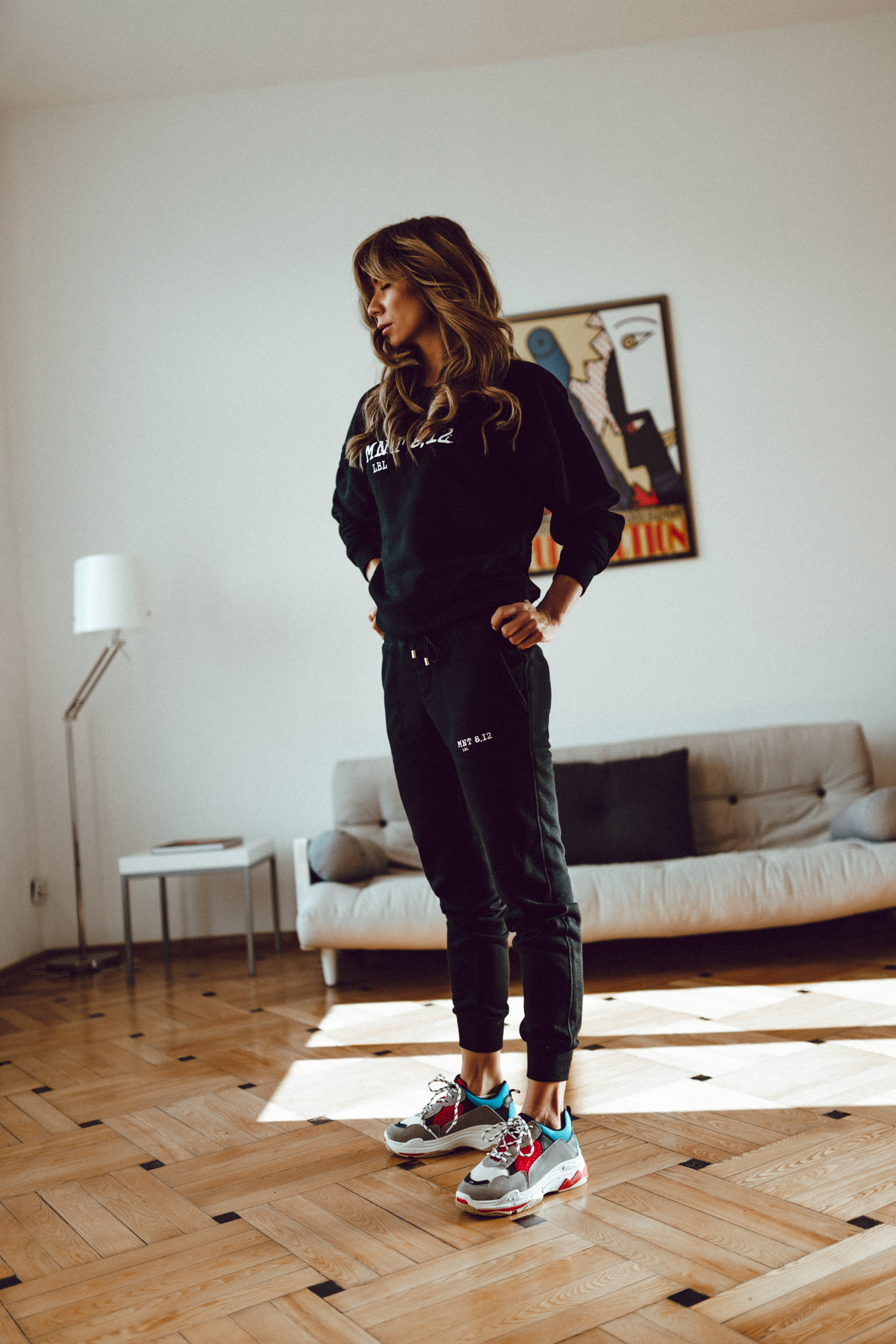 Pomysł na dzisiejszą stylizację to jesienna wygoda, a przy okazji funkcjonalność. Dres nie musi być tylko wygodną opcją, ale równie bardzo stylową, uwielbiam go zamieniać właśnie w ten sposób. Załóżcie pod bluzę białą koszulę, a Wasz look zmieni się o 180 stopni. Czasy kiedy noszona tylko po domu dawno juz minęły, teraz dres to bardzo stylowy strój.