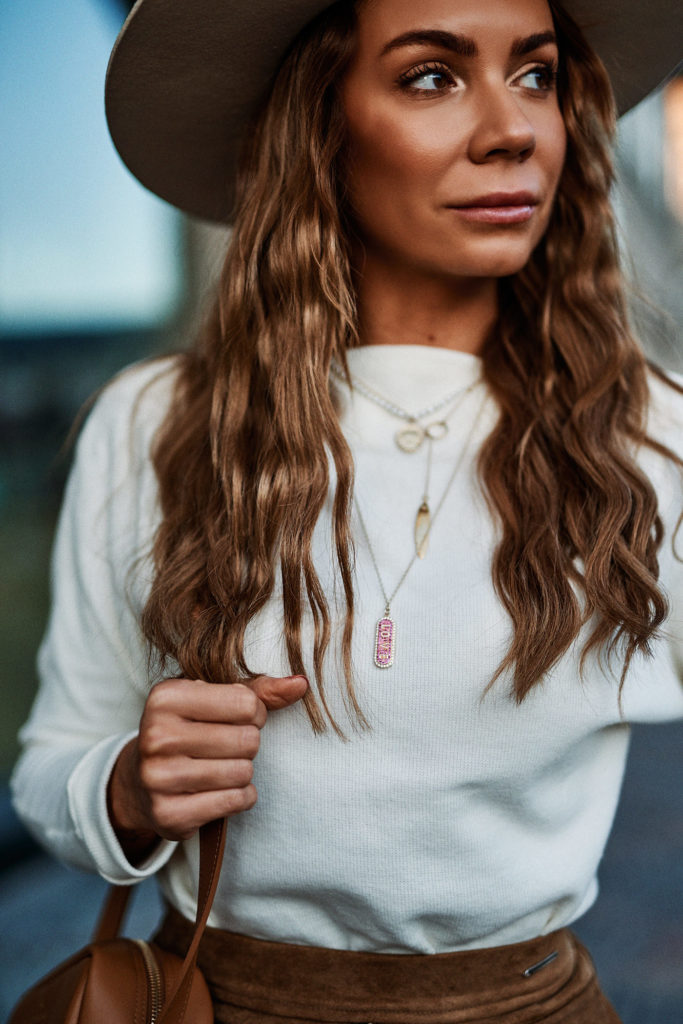 Elegancja, ponadczasowość, czyli ołówkowa spódnica sięgająca lekko za kolano lub jego połowy potrafi być zmysłowa i bardzo tajemnicza. Jeśli połączymy ją z delikatnym sweterkiem o luźniejszym kroju sprawdzi się idealnie nawet w przypadku stylizacji na co dzień. Ołówkowa spódnica z zamkiem i ozdobnymi kieszeniami idealnie podkreśla kształty, pięknie wysmukla sylwetkę, a delikatne rozcięcie optycznie wydłuża nogi. Wykonana z wygodnego, elastycznego zamszu w najmodniejszym, camelowym kolorze, świetnie pasuje do jesiennych stylizacji z klasycznym płaszczem czy marynarką. Wystarczy dobrać do niej delikatny sweterek i powstaje piękna, bardzo uniwersalna stylizacja, którą założycie do pracy czy na randkę.