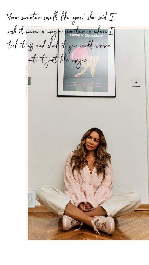 Your sweater smells like you, ” she said “I wish it were a magic sweater so when I took it off and shook it you would arrive into it just like magic—I hate sweaters that aren’t magic…