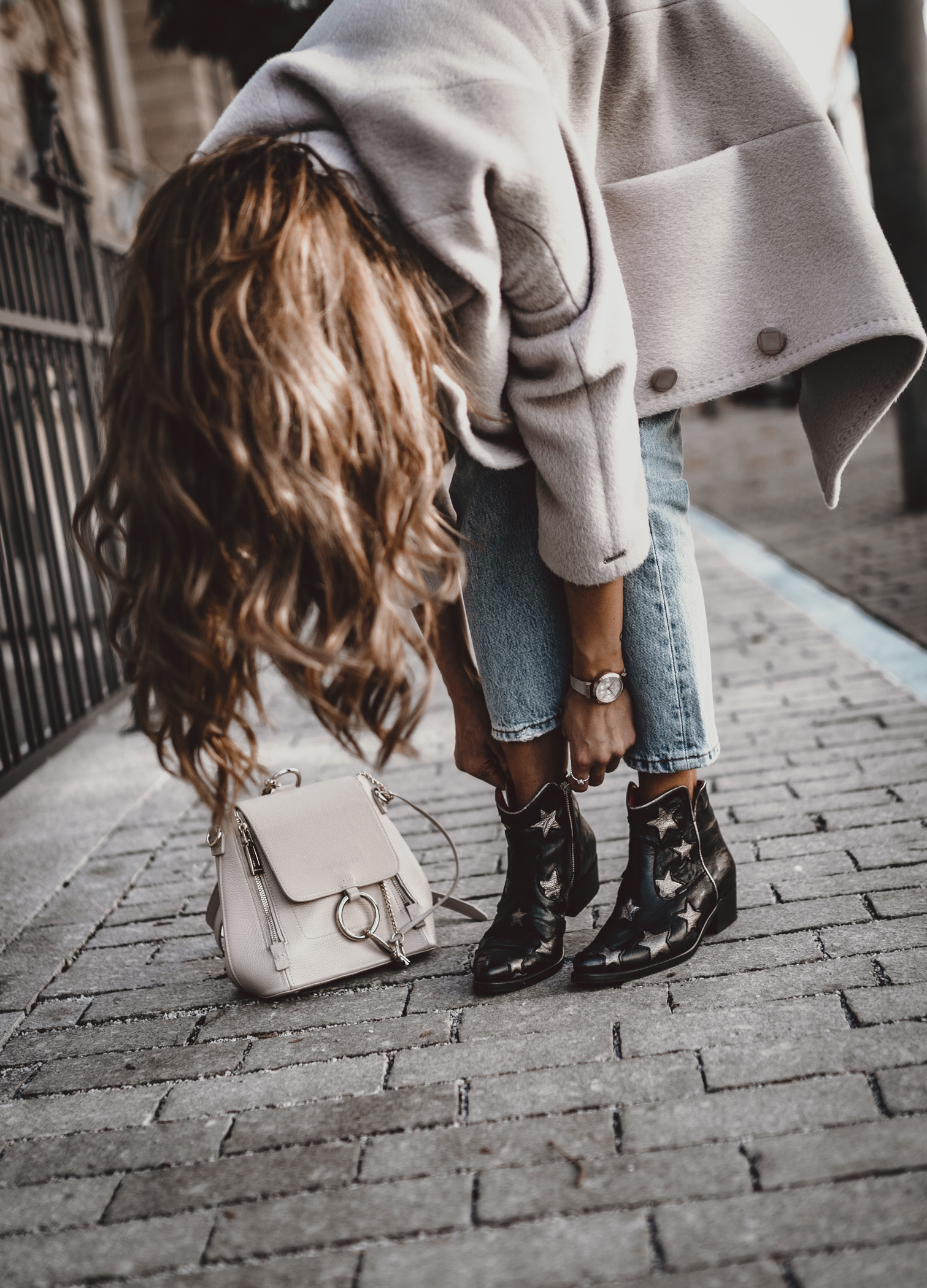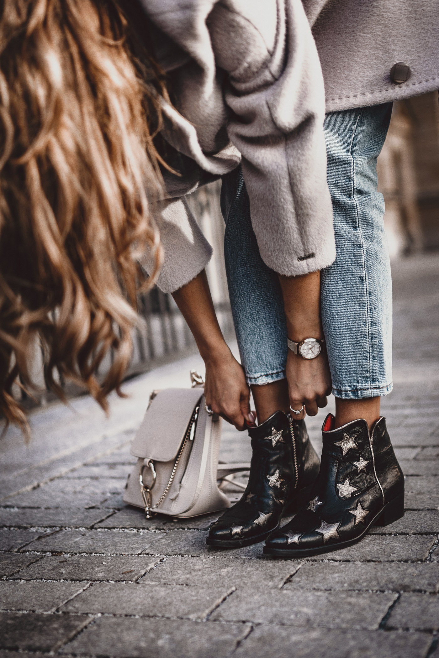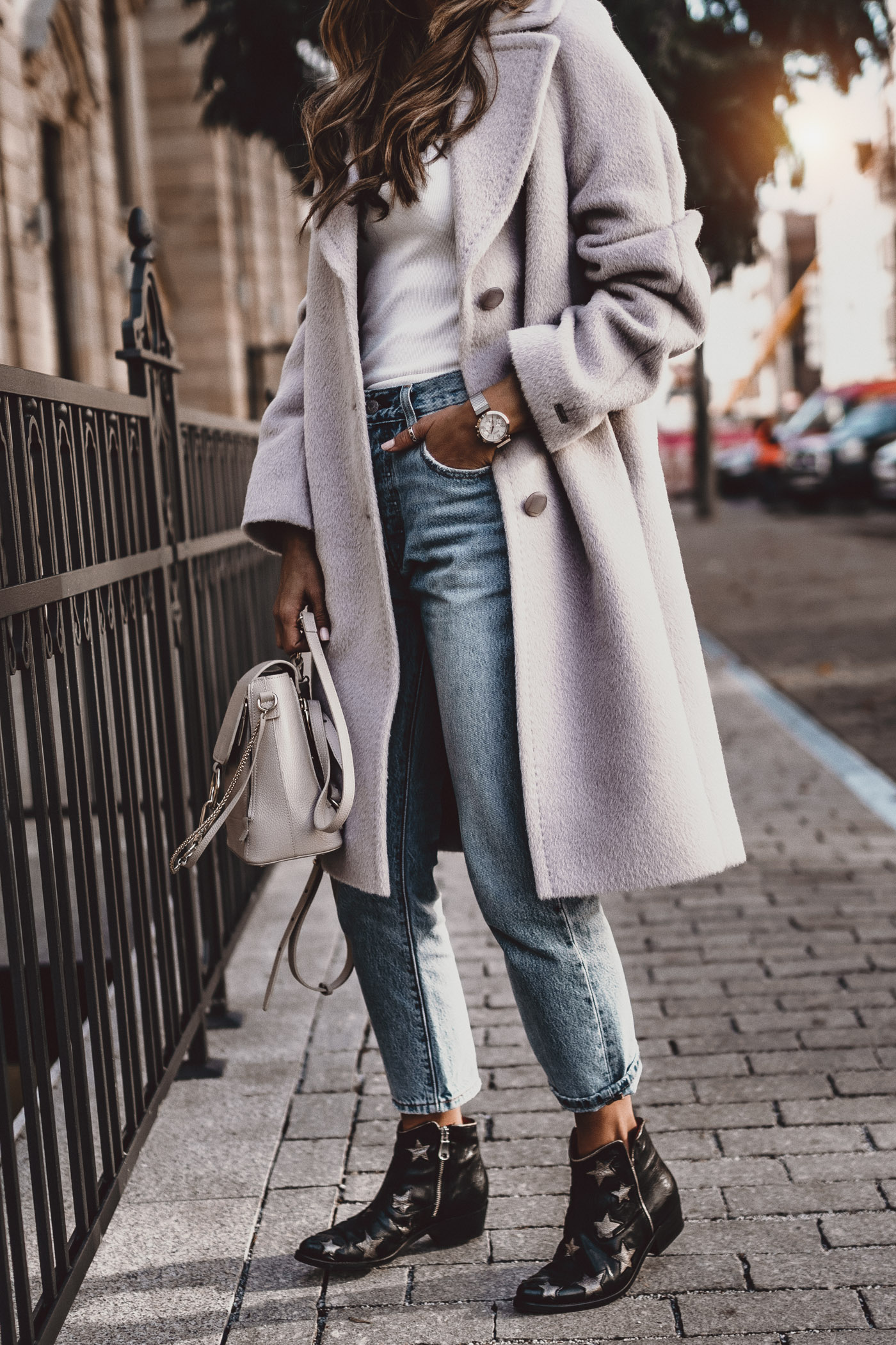 Dziś mój zestaw to biały longsleeve, klasyki 501 od Levis, piękny, klasyczny płaszcz i botki, które nadają trochę szaleństwa tej stylizacji. Płaszcz, wysokiej jakości, o pięknym kroju, kolorze, który idealnie współgra z większością moich ubrań pochodzi z polskiej firmy JASS, żałuje, że dopiero teraz ją odkryłam. Fasony, styl, wykończenie, jakość jest niesamowita, mam nadzieję, że moje zdjęcia to oddają.