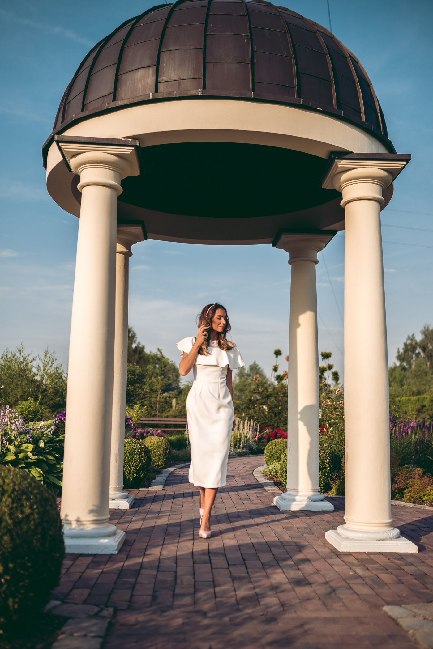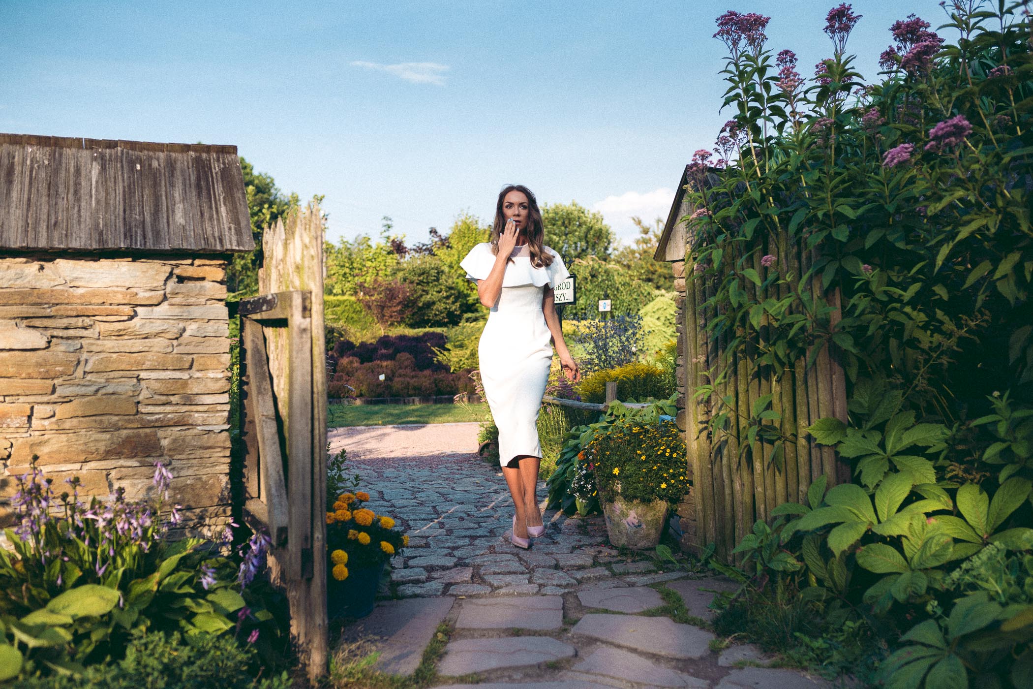 Ogród zaczął powstawać w 1979 roku kiedy to jego właściciel Bronisław Kapias rozpoczął tworzenie tu zielonych zakątków. Najstarsza część ogrodu nazwana została Starymi Ogrodami do zwiedzania. Tutaj znajdują się liczne ławeczki, altanki oraz zaciszne i zacienione kąciki będące idealnymi do odpoczynku w upalne dni. Do dnia dzisiejszego tworzony jest z ogromną pasją i rodzinną tradycją. Nie bez powodu więc mam na sobie sukienkę marki EMOI, która również jest marką z tradycją i tak samo powstała z miłości, tym razem do mody, do tworzenia pięknych, unikatowych oraz wysokiej jakości ubrań. W tych projektach widać połączenie dwóch światów mamy i córki, prostoty, klasyki oraz nuty nowoczesności, z takiej mieszanki powstają zaczarowane projekty.