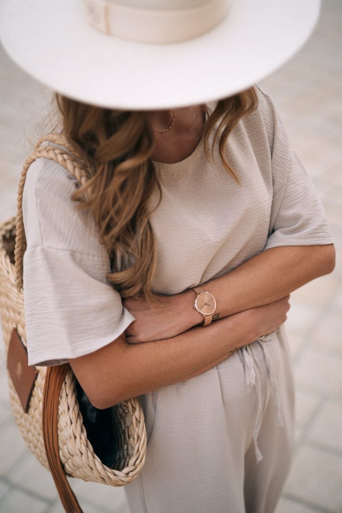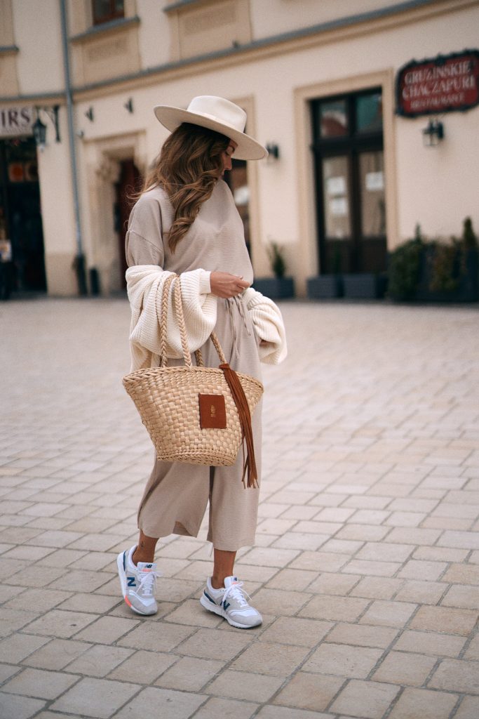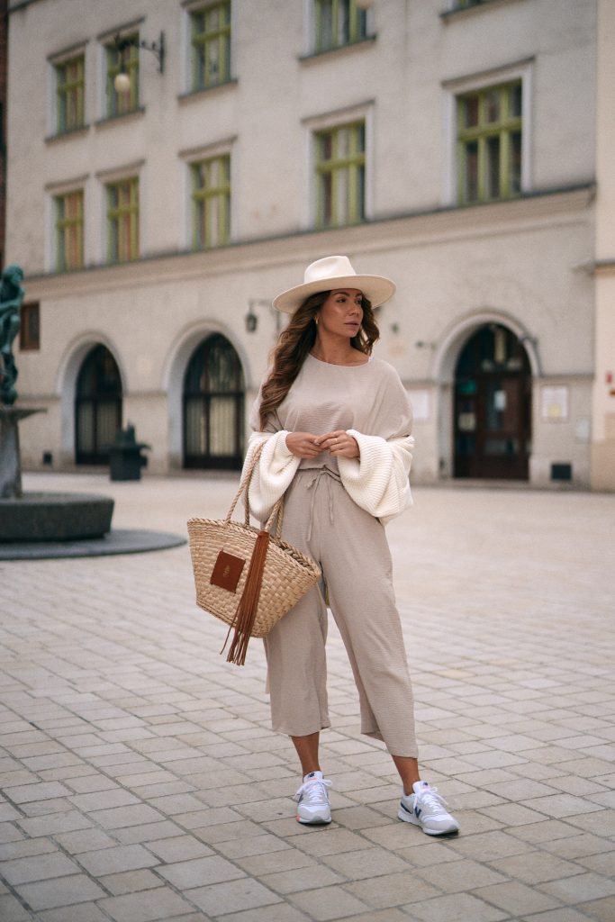 Ciekawą alternatywą zamiast sukienek na wiosnę jest dobrze dobrany komplet. To propozycja dla tych z Was, które cenią sobie prostotę i wygodę. Luźne spodnie oraz bluzka to świetne połączenie do codziennych stylizacji. Uwielbiam ten zestaw za luźne spodnie, które można nosić na wiele sposobów. Wykorzystamy je wiosną, ale przydadzą się nam również na plażę. Dziś zestawiłam go ze trampkami, tak, aby całość miała miejski charakter. Jeśli zabiorę go na plażę, świetnie wyglądać będą klapki.