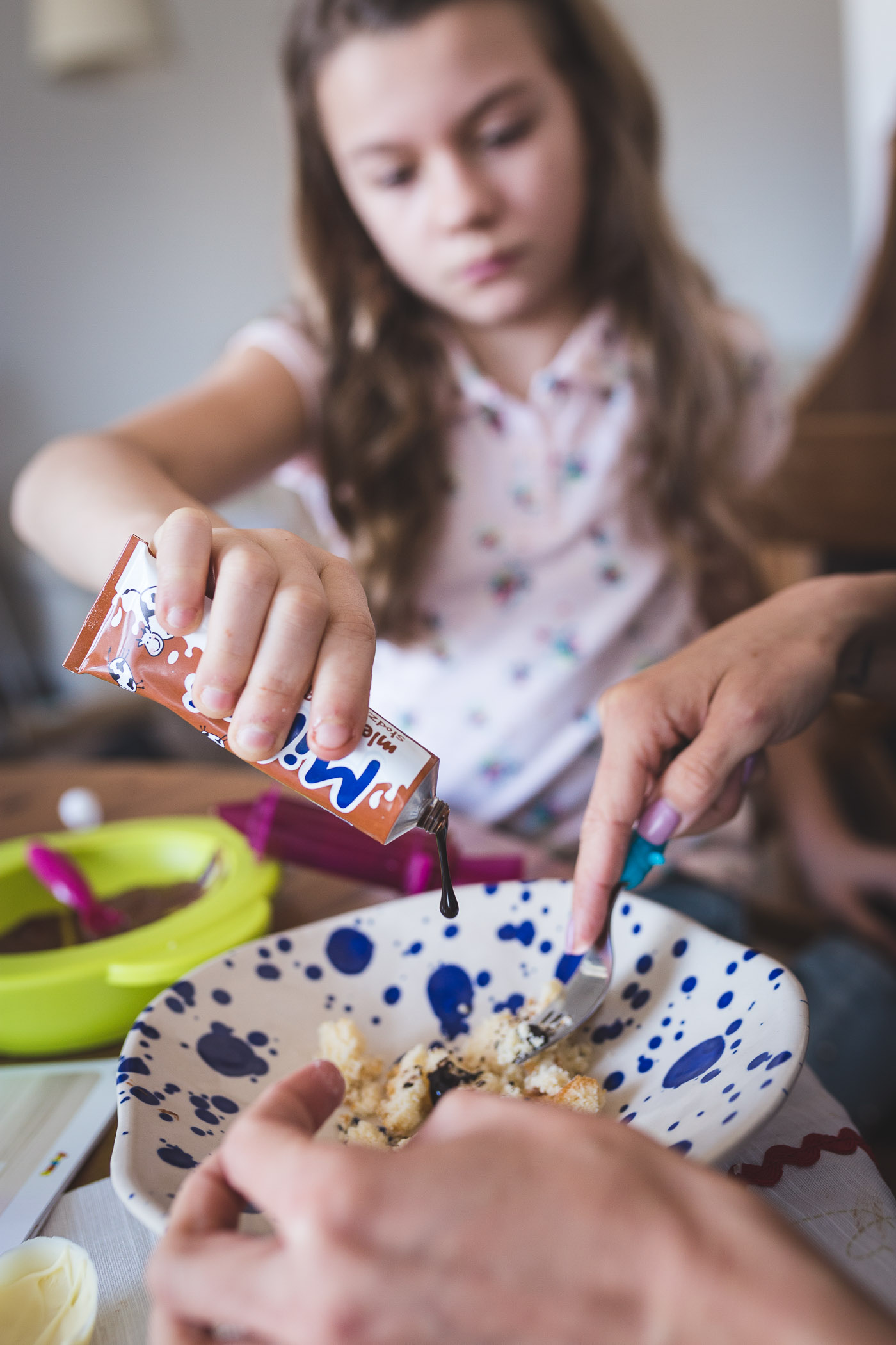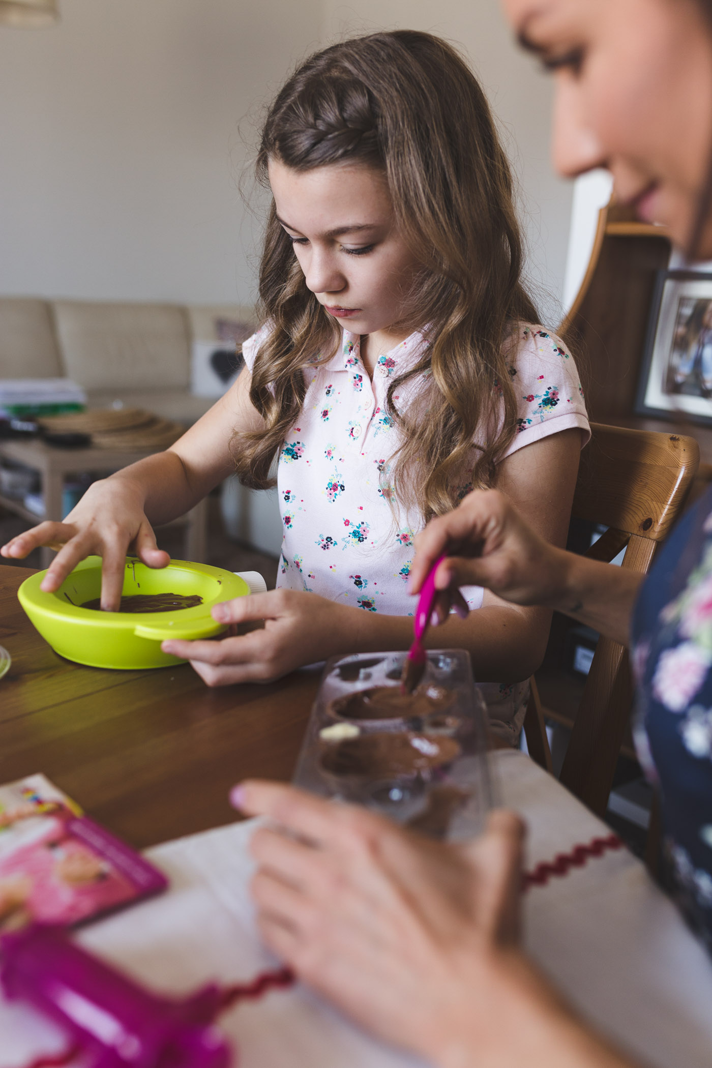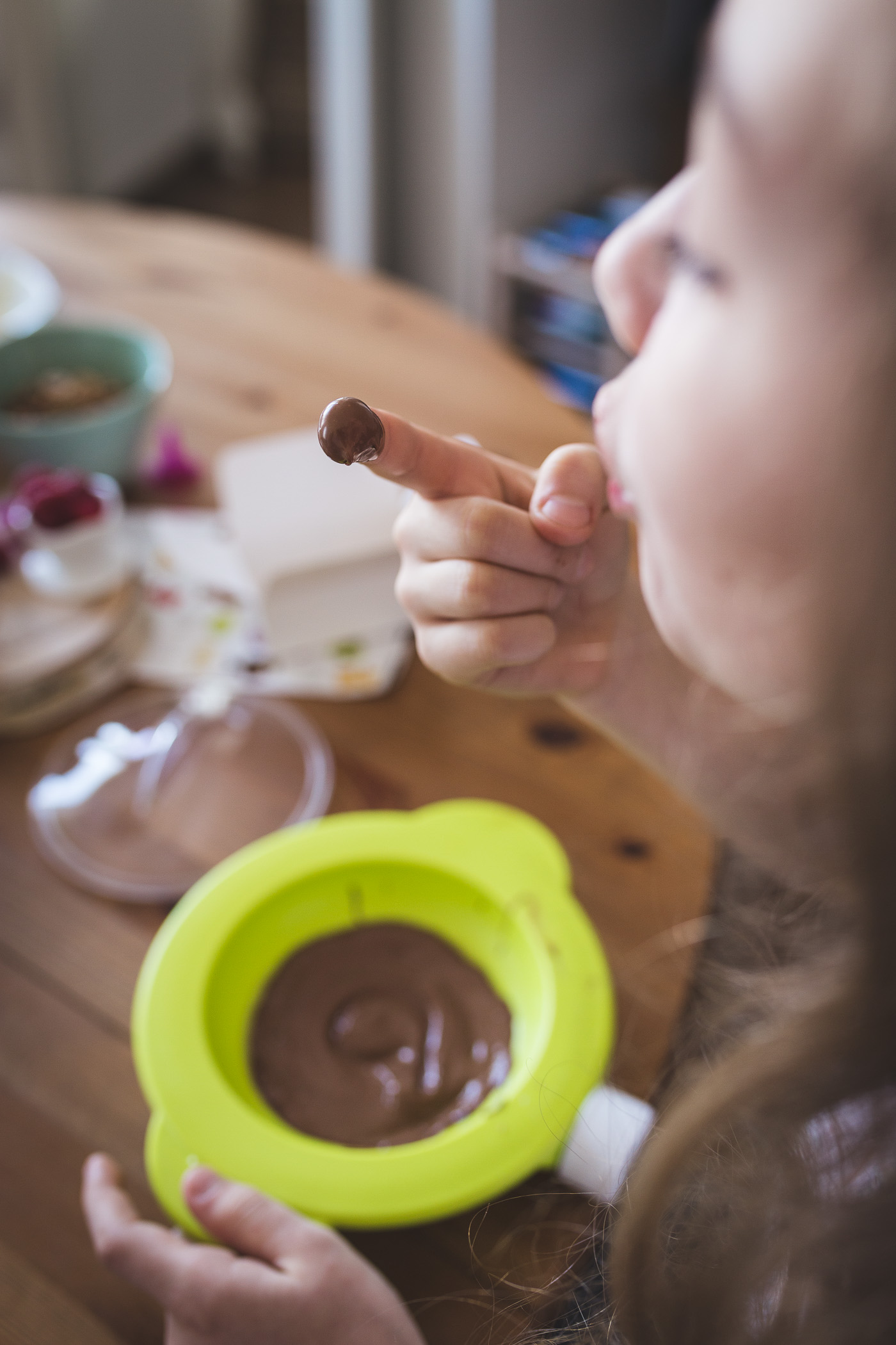 Dzieci kochają gotować! Jeśli tylko dopuścicie je do kuchennego stołu będą mieszać, przesypywać, kroić, siekać, nalewać, wałkować. Pomyślcie teraz, że do tego wszystkiego dokładamy czekoladę… chyba żadnego malca zapraszać specjalnie nie będzie trzeba, mało tego, podejrzewam, że do całej zabawy chętnie włączy się cała rodzina. Gwarantuję, że zabawy będzie co nie miara, a gdy już skończycie będziecie mogli wspólnie pochłonąć te pyszności.