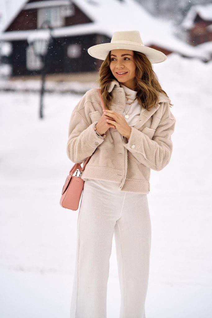 Pozostając jeszcze w zimowym krajobrazie, ale myślami powoli wybiegając do wiosny chciałabym przedstawić Wam dzisiejszą stylizację. Szerokie spodnie z wysokim stanem oraz bluza z efektownym półgolfem sprawią, że poczujesz się niezwykle kobieco. To taki zestaw, w którym czujesz się wygodnie i seksownie zarazem. Lubię biegać w nim po domu i wiem, że gdy tylko nadejdzie wiosna będzie prawdziwym hitem.