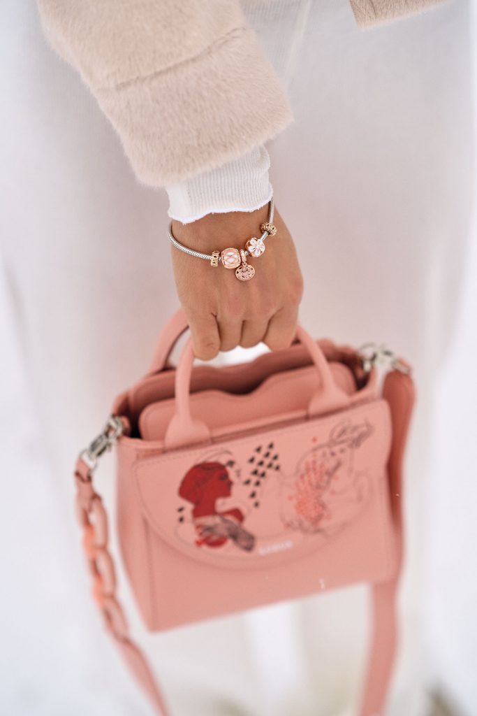 Całość uzupełniłam dodatkami w kolorze subtelnego, pastelowego różu. Biżuteria pochodzi z najnowszej, miłosnej kolekcji Apart. Nie bez powodu pojawiła się w tym poście, przypominam, że do walentynek pozostało już zaledwie kilka dni.