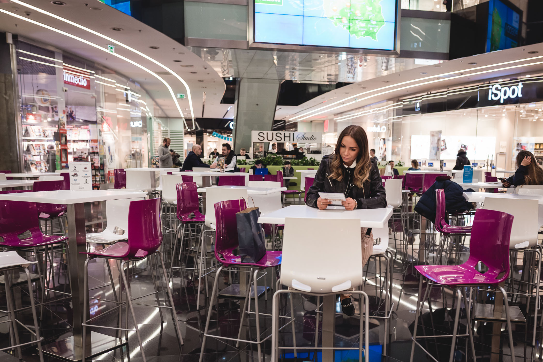 Zanim jednak wyruszyłam odkrywać nowe kolekcje, musiałam uzupełnić poranną dawkę kofeiny, usiadłam wygodnie w Costa Coffee na moim ulubionym podwójnym espresso z delikatną pianką, otworzyłam laptopa, aby odpisać na zaległe maile, dokończyć nowy post na bloga oraz obróbkę zdjęć. Warto tu przyjść zwłaszcza o poranku, wpadające przez szklany dach promienie słońca dają niesamowity zastrzyk energii. Gdy już wszystko udało mi się skończyć oraz naładować baterie mogłam ze spokojną głową wyruszyć na zakupy.