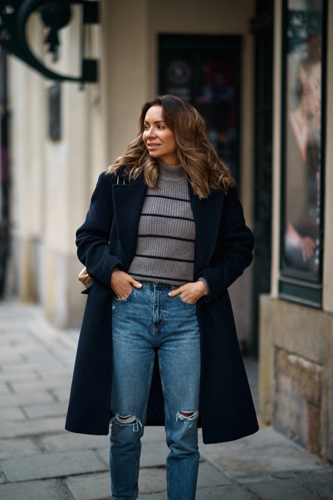 Bardzo ładnie wyglądasz w tej stylizacji. Najbardziej przypadł mi do gustu ten płaszcz, ale ten sweterek i dżinsy też są ok.